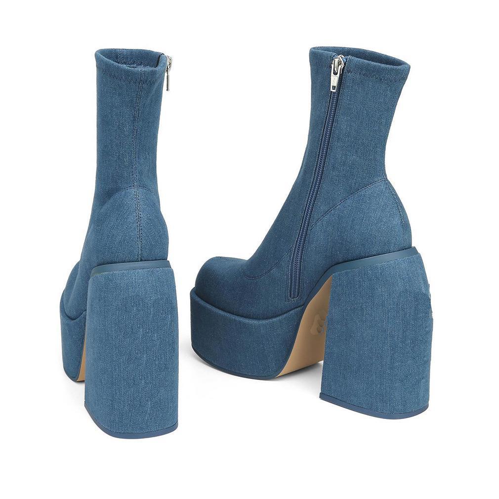Dropshopping2022 가을과 겨울 패션 두꺼운 바닥 하이힐 40-43 데님 낮은 튜브 플러스 사이즈 여성 부츠 조수스토어 가기