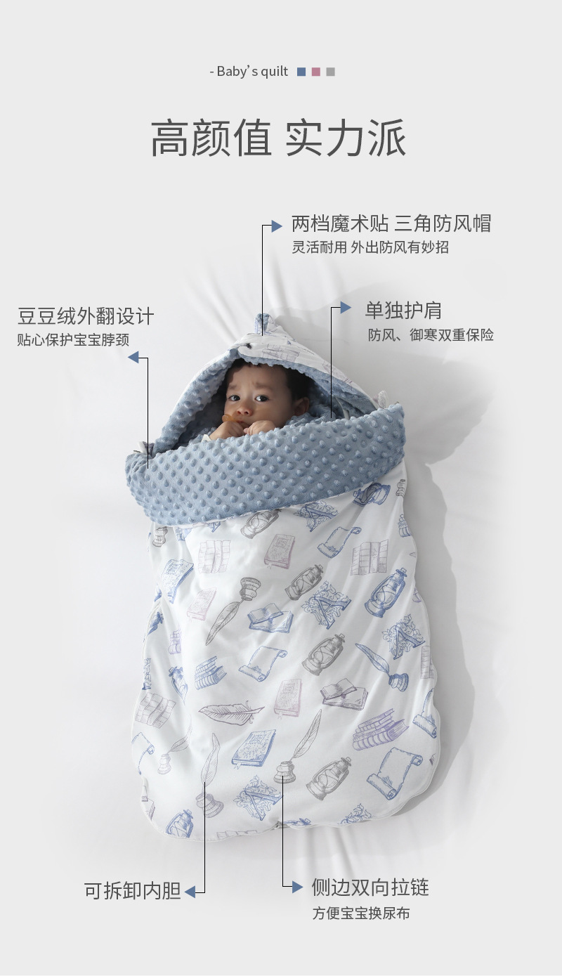 NOOER 침낭 아기 봄과 가을 얇은 아기 깜짝 놀람 방지 어린이 콩 줄기 벨벳 진정 사계절 유니버설 스토퍼 겨울