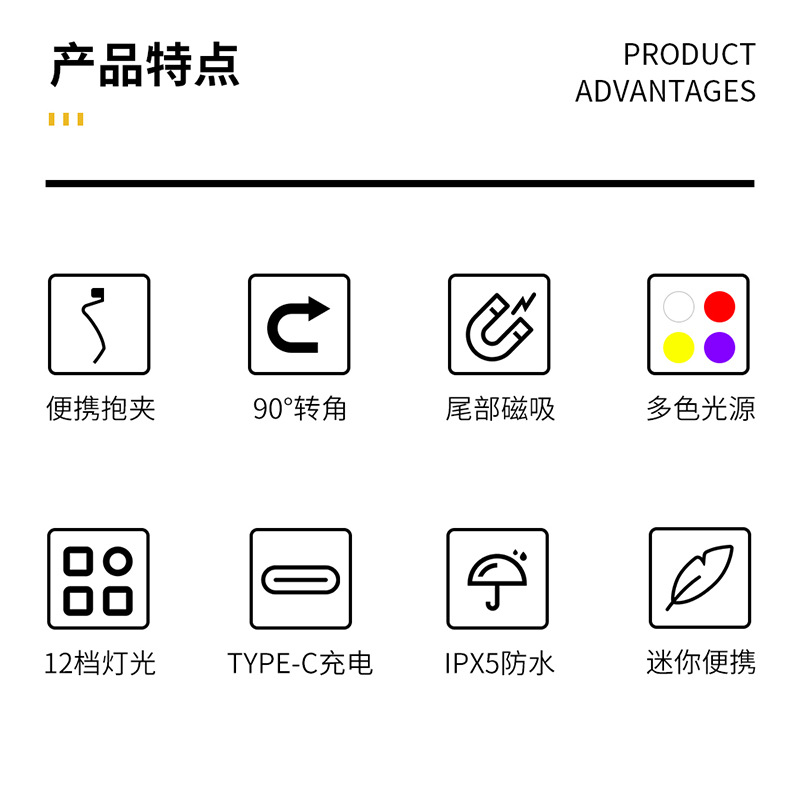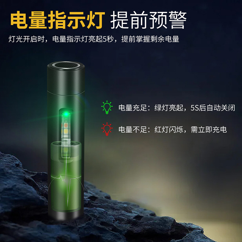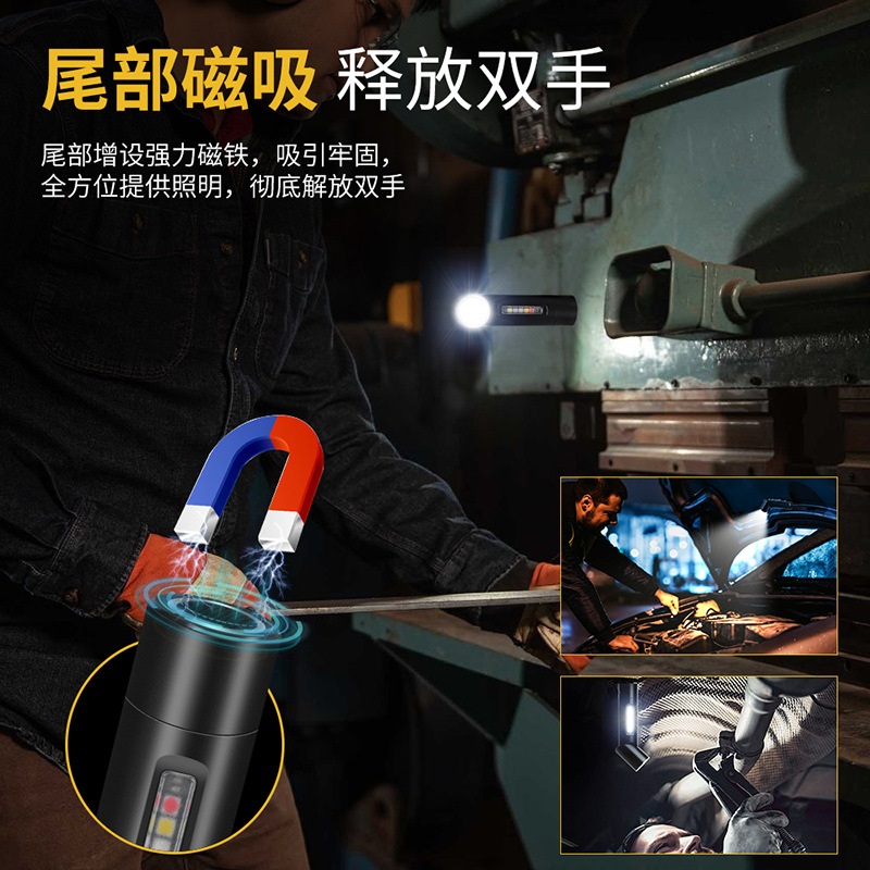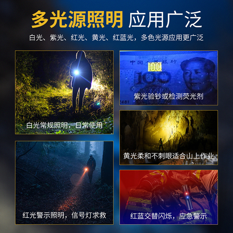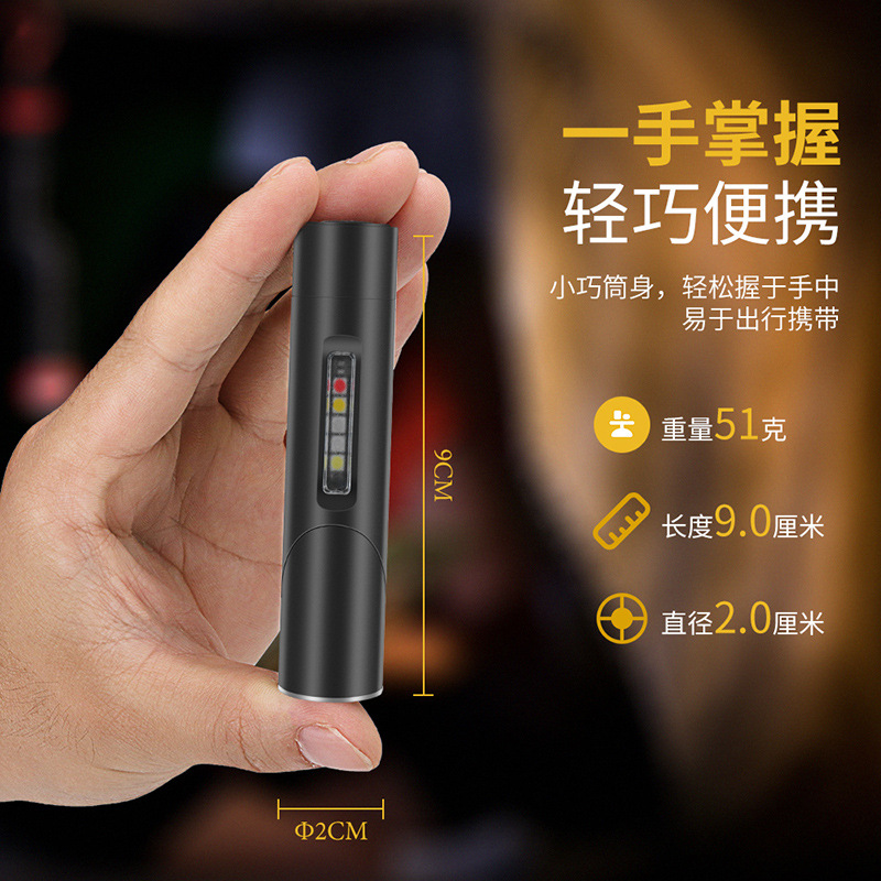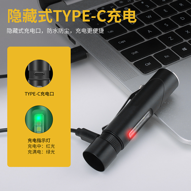 特色功能: 侧灯红蓝警示,UV紫光验钞,红光,黄光,小巧轻便,磁吸功能,隐藏式充电口
