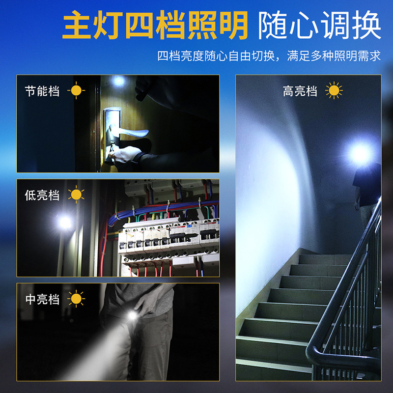 主灯工作模式:长按开关开启主灯高亮,松开关闭