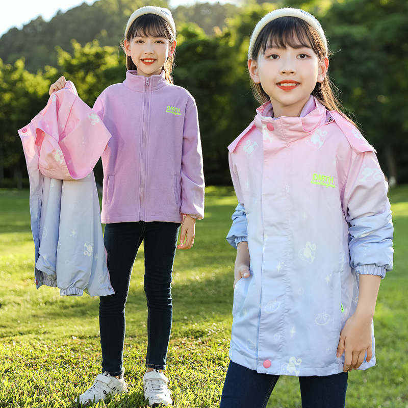 아동 및 여아 코트 러쉬 의류 쓰리 인-원 투피스 아동 의류 큰 어린이 점진적 컬러 가을 재킷 가을과 겨울 패션스토어 가기