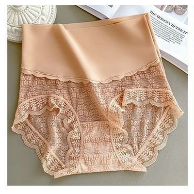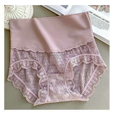 TikTok 같은 스타일 하이 웨이스트 레이스 속옷 여성의 섹시한 통기성 편안한 팬티 높은 탄성 허리 배꼽 바디 아름다움