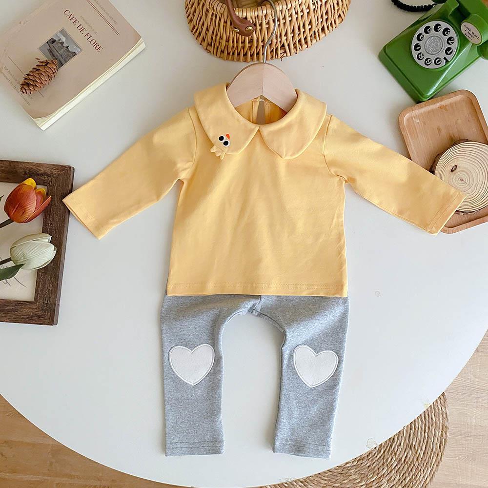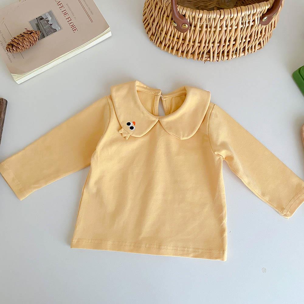 아기 옷 가을 옷 아기 소녀의 긴 소매 옷깃 티셔츠 어린이 가을 옷 기본 셔츠 만화 탑 봄 어린이 티셔츠
