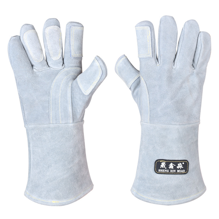 전체 소가죽 전기 용접 장갑 내화 와이어 2 층 벨벳 화상 방지 용접 장갑 내마모성 고온 내성 용접기 장갑