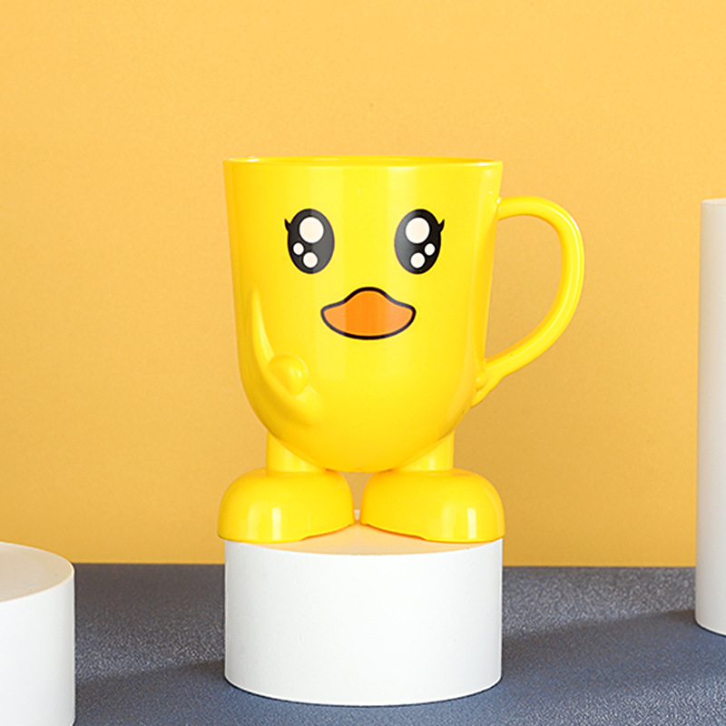 노란 오리 양치질 컵 아기 어린이 플라스틱 물 컵 음식 학년 PP 물자 재고 도매 아기 물 컵스토어 가기