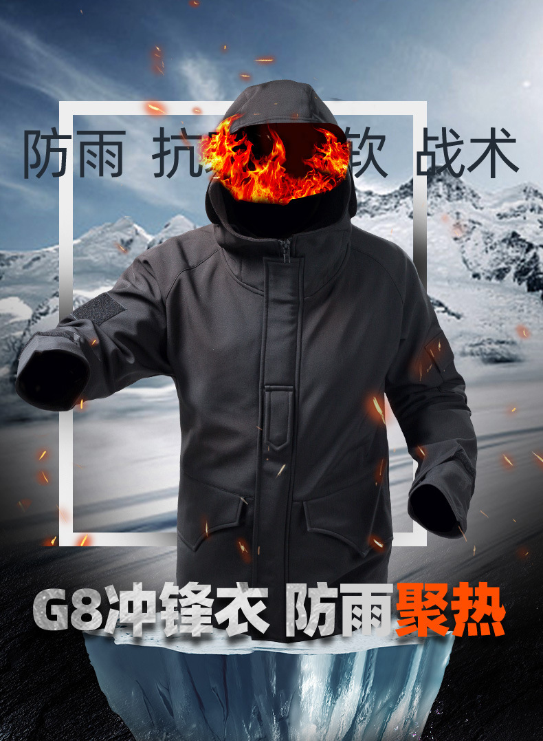 위장 반대로 튀는 전술 상어 피부 G8 재킷 남자 방풍 야외 후드 재킷 양털 따뜻한 코트