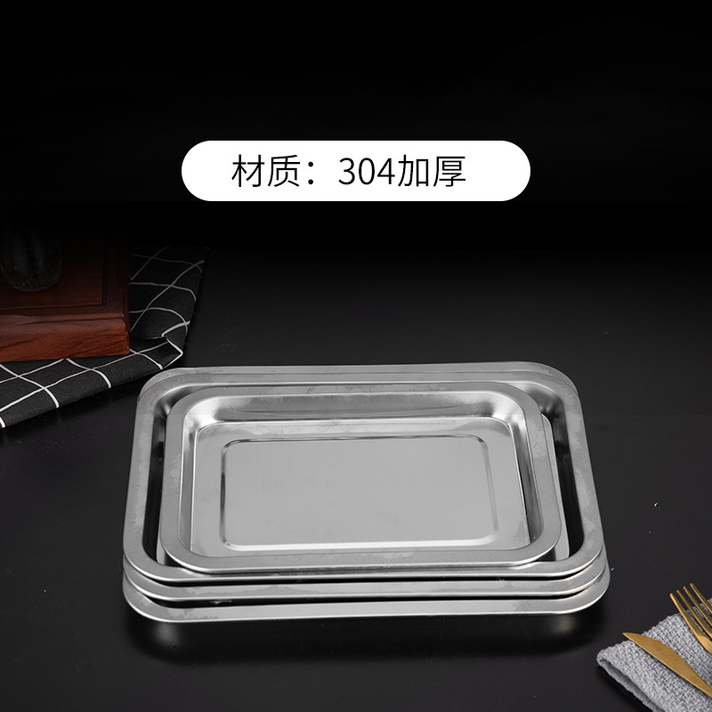 304 스테인레스 스틸 트레이 두꺼운 바베큐 디너 플레이트 생선 찜 밥 만두 직사각형 플레이트 스테인레스 스틸 플레이트 도매스토어 가기