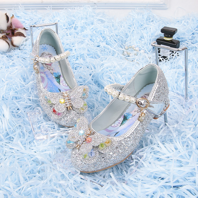 소녀의 가죽 신발 2023 봄과 가을 신상품 나비 진주 어린 소녀 엘사 공주 신발 아기 성능 하이힐스토어 가기