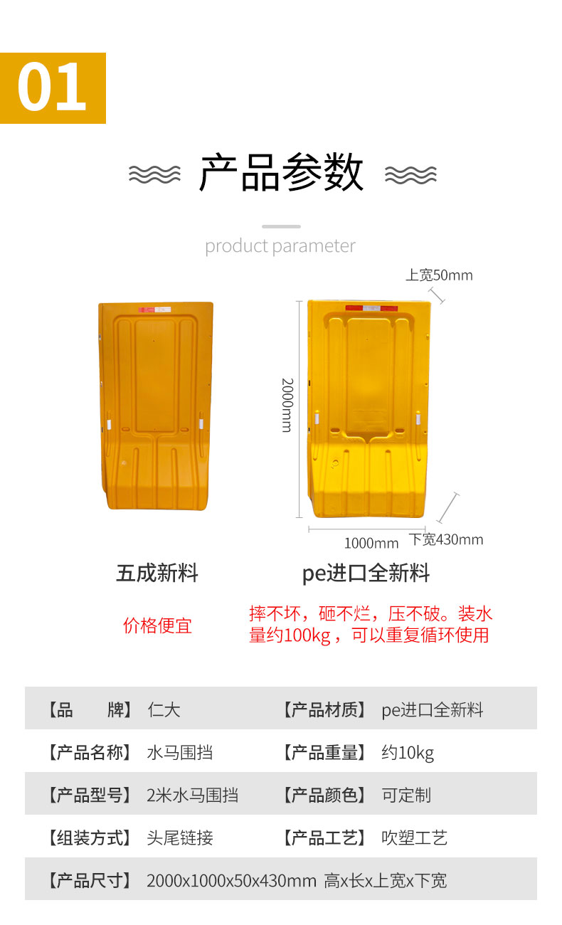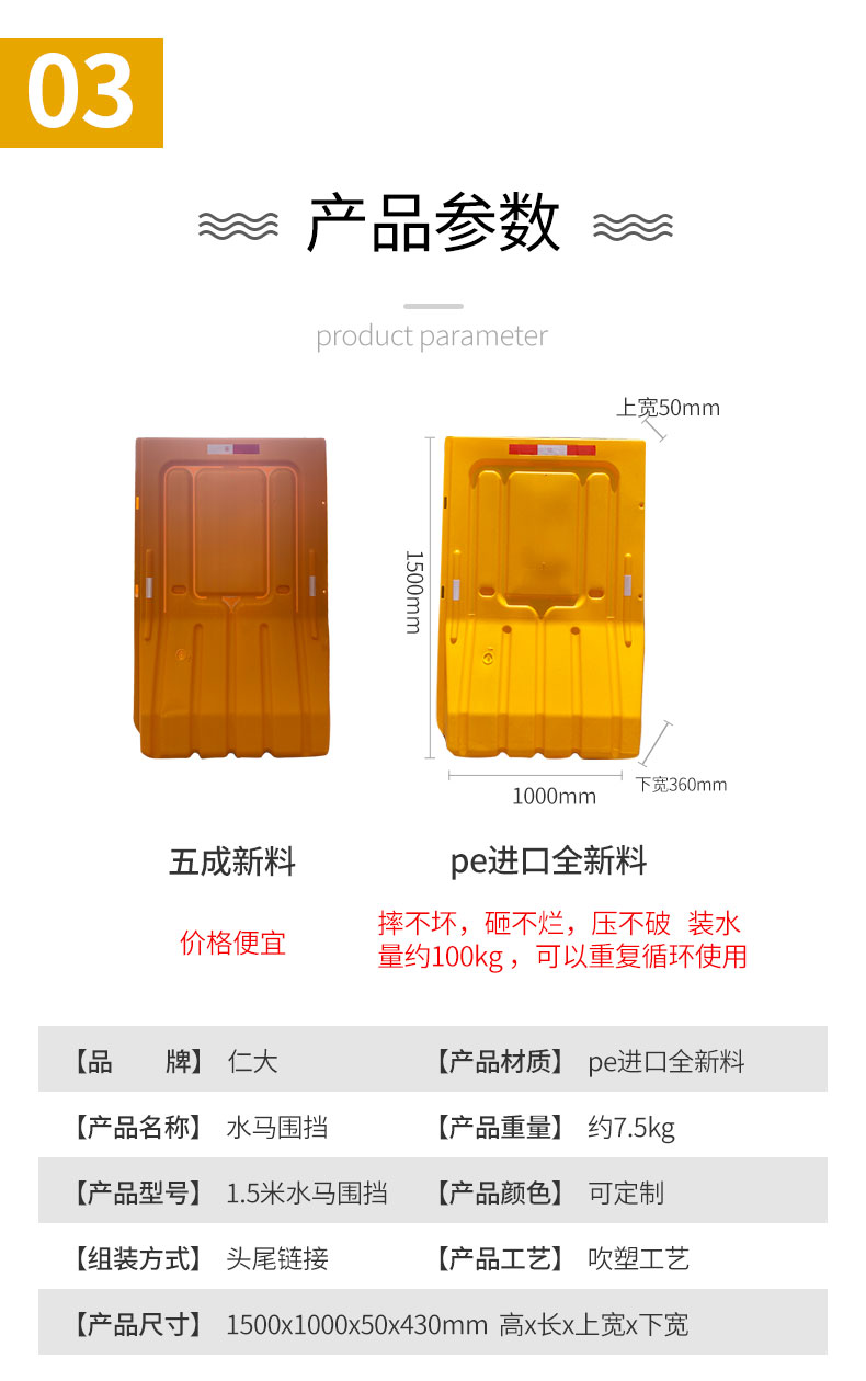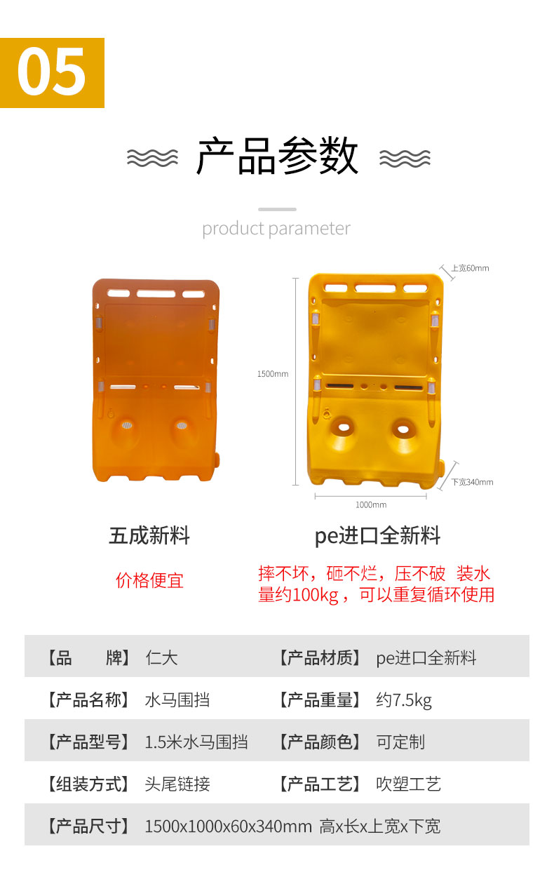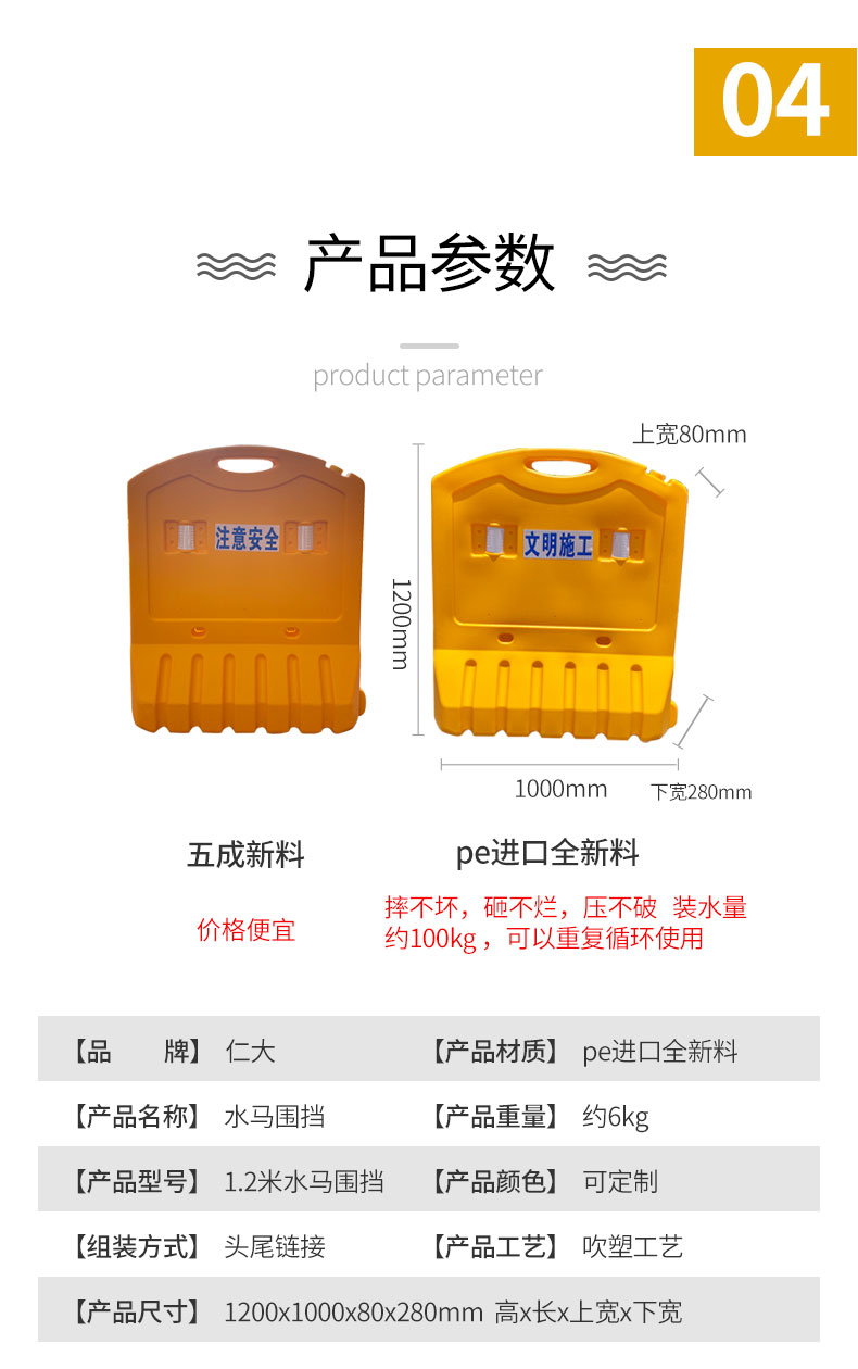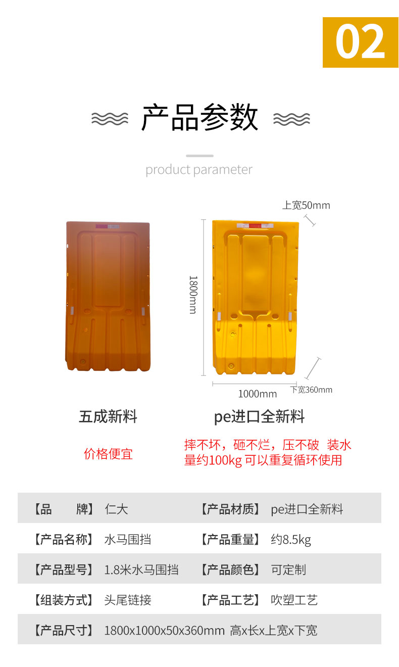 1.5m1.7m1.72m2m 높은 울타리 이동식 플라스틱 물 말 시영 물 주입 인클로저 불산공장 직선스토어 가기