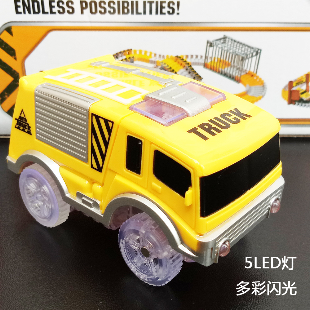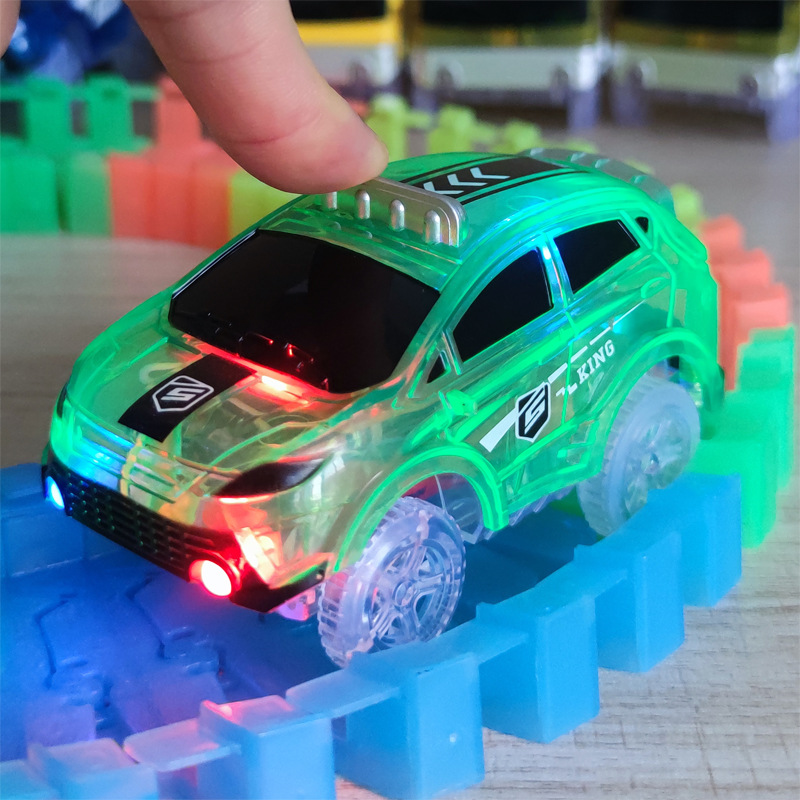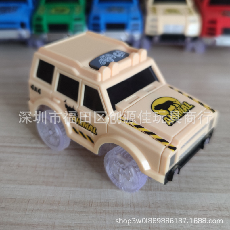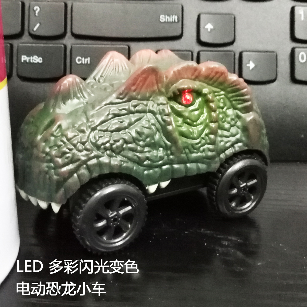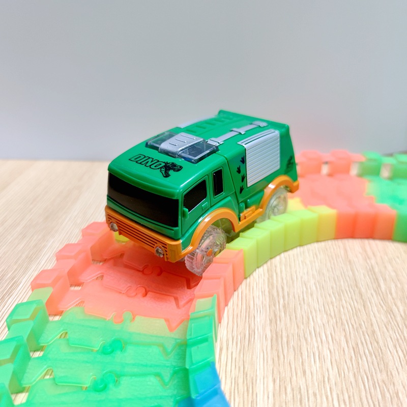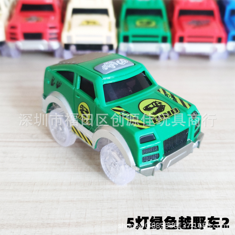 전기 철도 자동차 롤러 코스터 빛나는 자동차 크로스 보더 변경 가능한 레이싱 어린이 장난감 공룡 레일 카스토어 가기