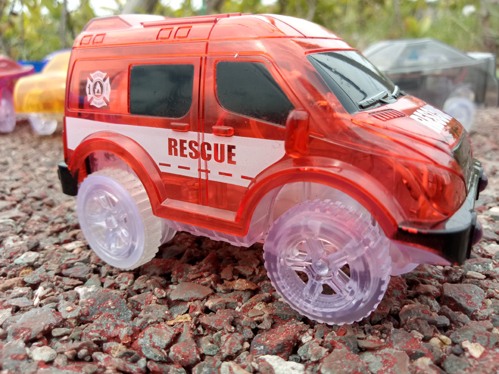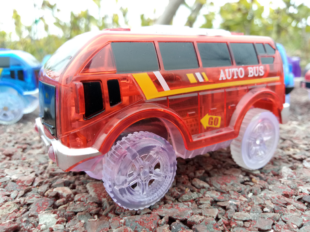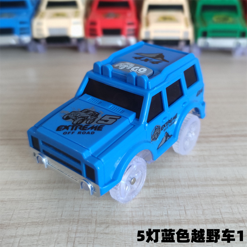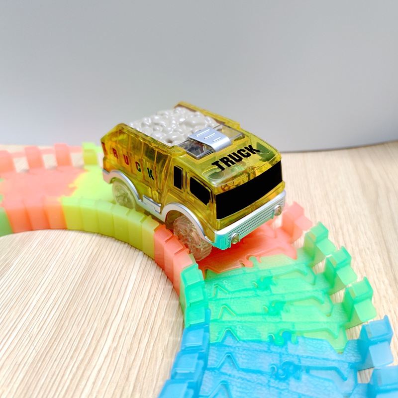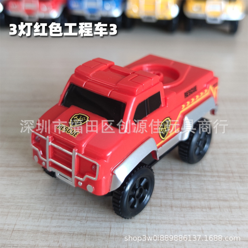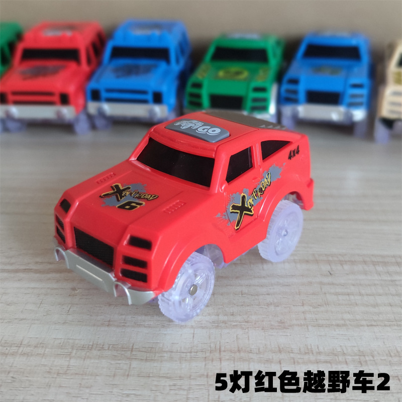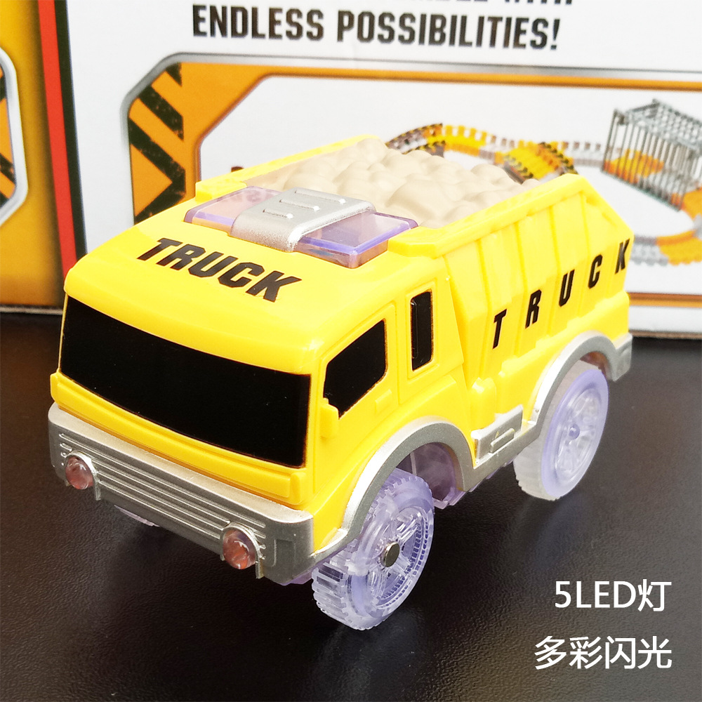 전기 철도 자동차 롤러 코스터 빛나는 자동차 크로스 보더 변경 가능한 레이싱 어린이 장난감 공룡 레일 카스토어 가기