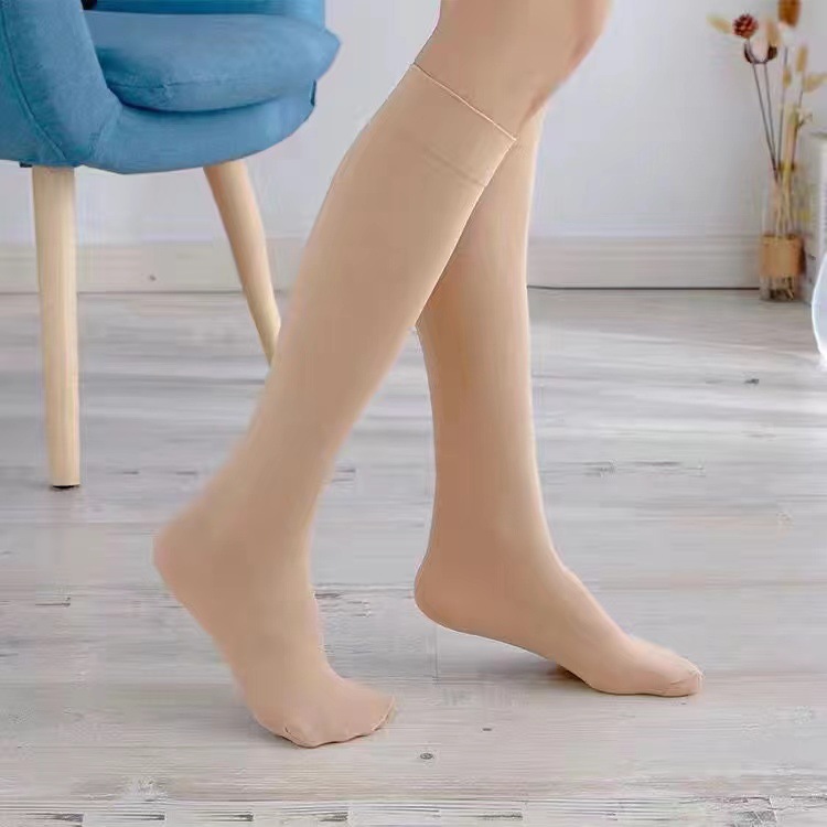 봄과 가을 벨벳 중간 두께 중간 길이 양말 여성용 스킨 컬러 무릎 위 양말 안티 후크 실크 살색 실크 스타킹 롱 튜브 느슨한 버전스토어 가기
