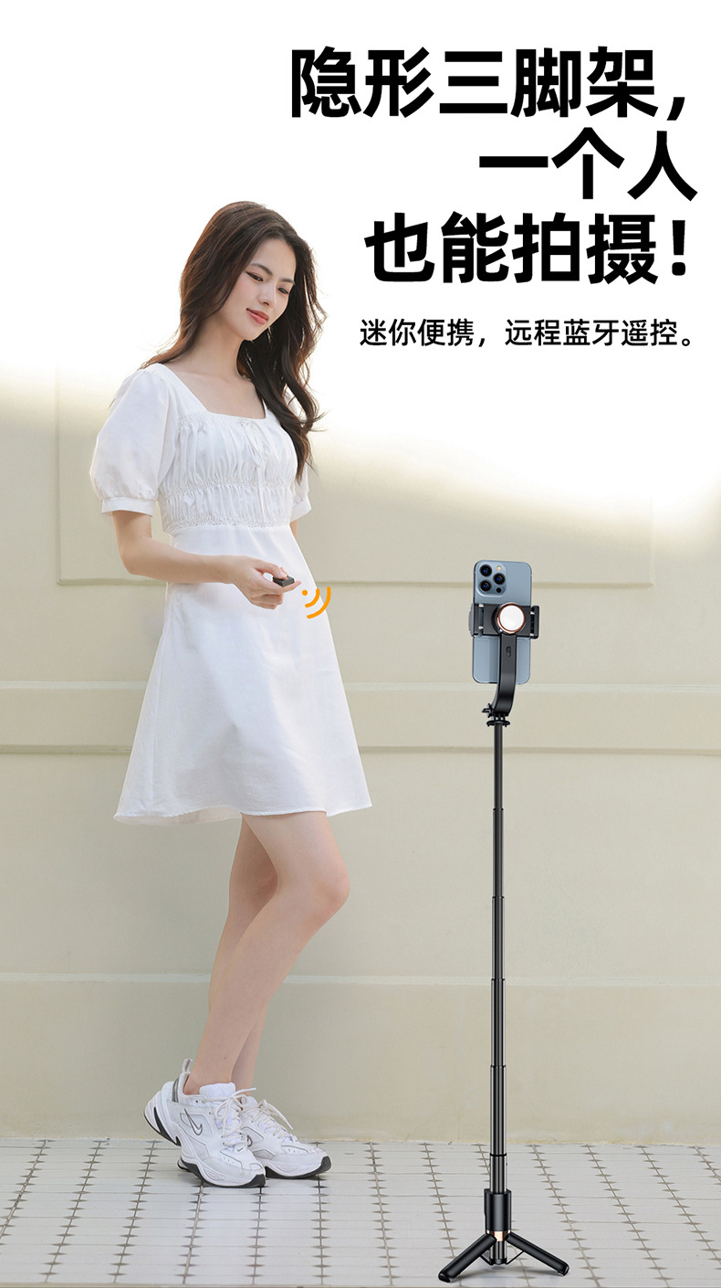 • [AR 지능형 흔들림 방지] 0.8 m 텔레스코픽 로드 원 키 수평 및 수직 촬영 + 보조 조명