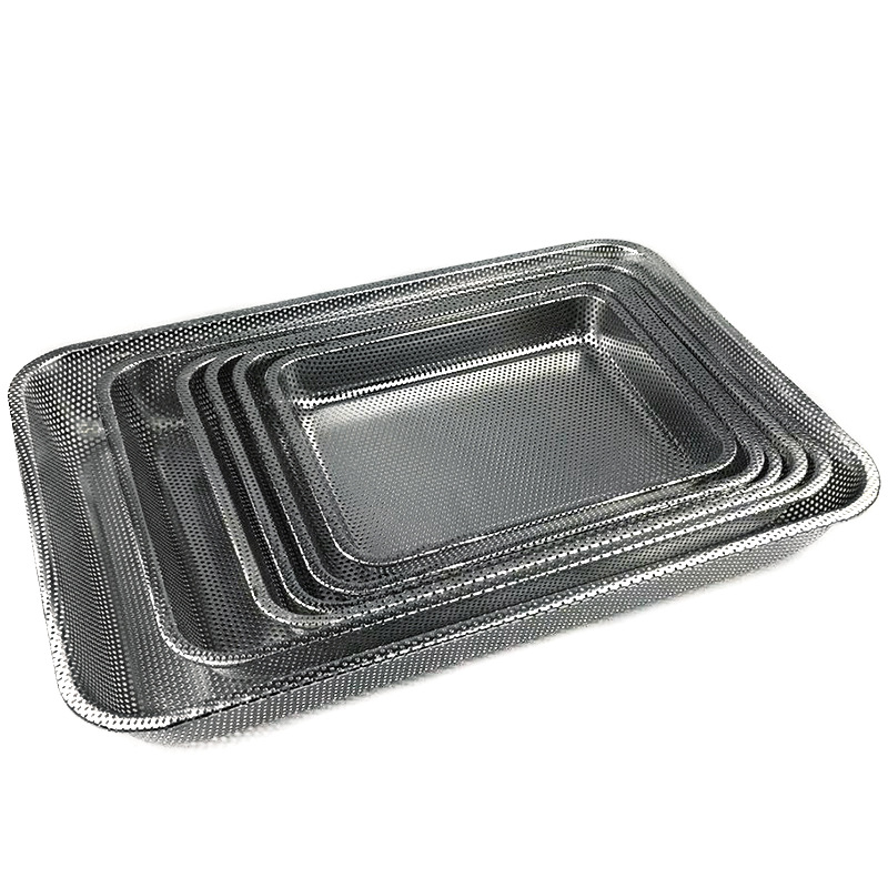 두꺼운 스테인레스 스틸 누출 플레이트 프라이팬 조밀 한 구멍 프라이팬 필터 플레이트 직사각형 트레이 찜 메쉬 플레이트 펀칭 드레인 플레이트