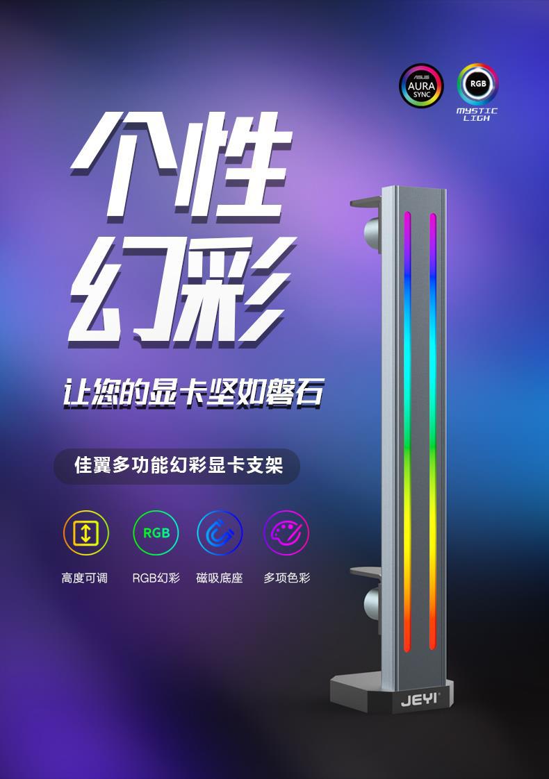 Jiayi 데스크탑 컴퓨터 그래픽 카드 지원 프레임은 RGB 다채로운 조명 그래픽 카드 브래킷 자기베이스로 올리거나 내릴 수 있습니다