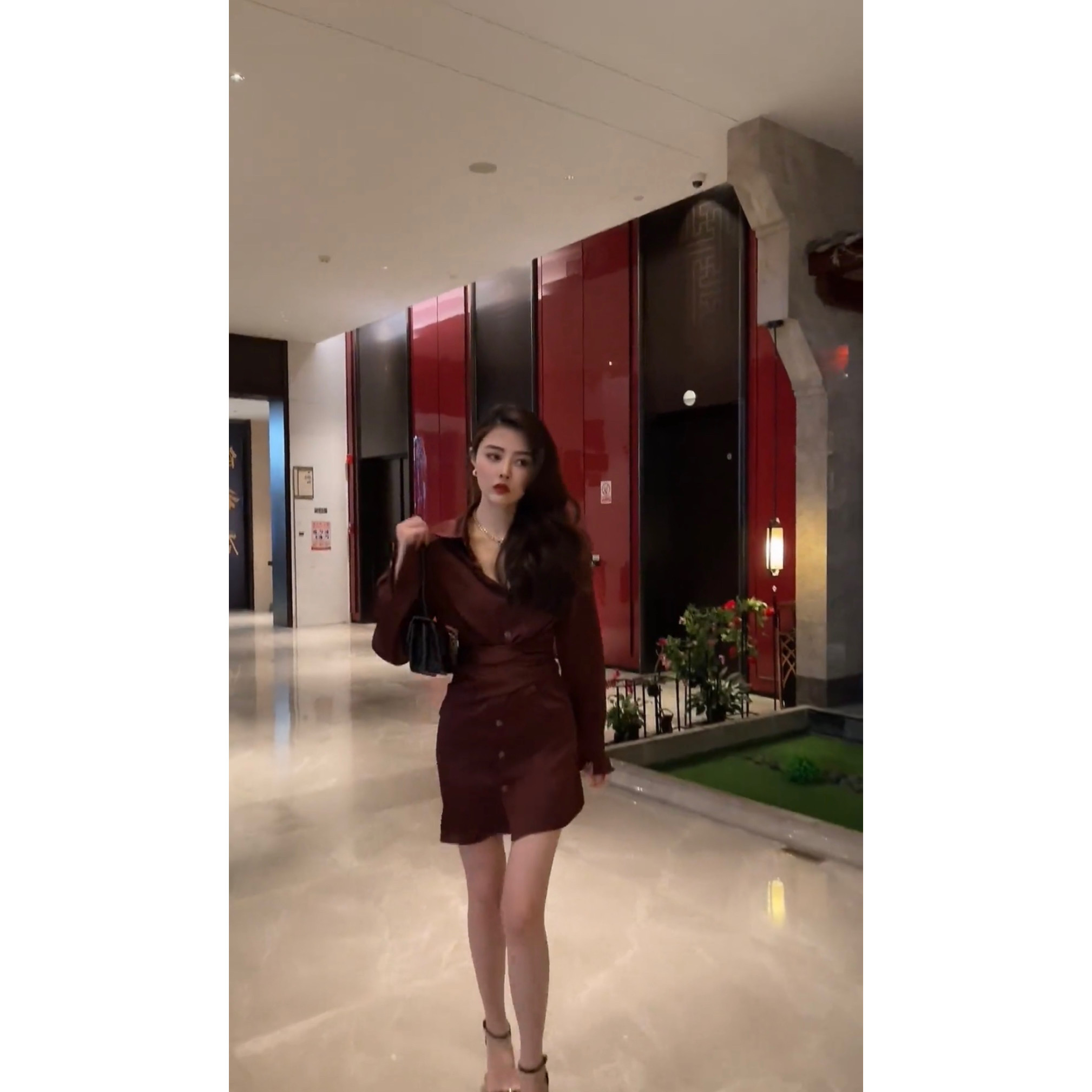 YT50462 프렌치 프리미엄 티 브레이크 콜드 스타일 해변 휴가 베르사유 V-넥 배 모양의 그림 원피스스토어 가기