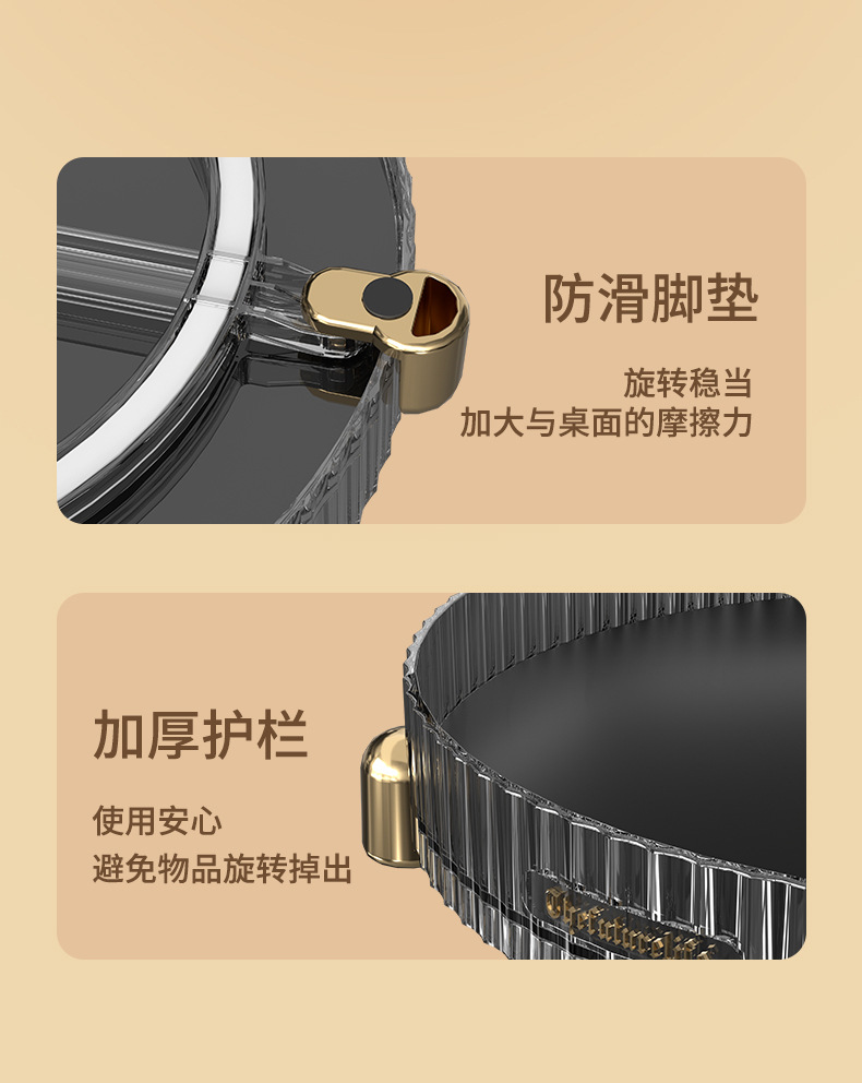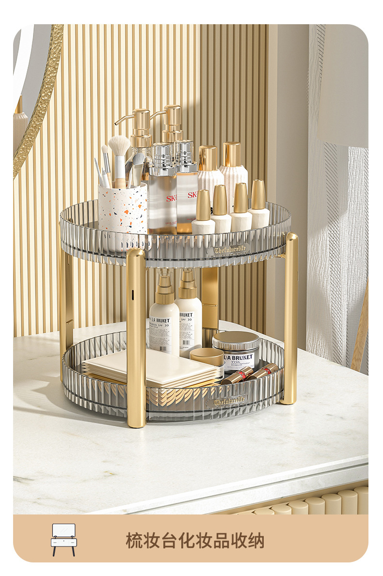 旋转化妆品收纳盒 桌面收纳高级感360度护肤品置物架轻奢收纳盘