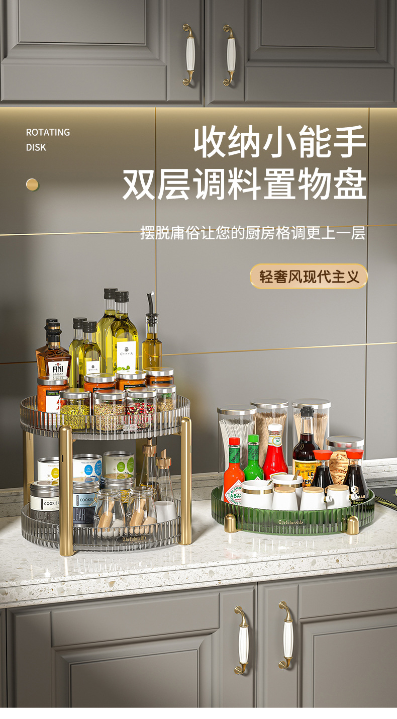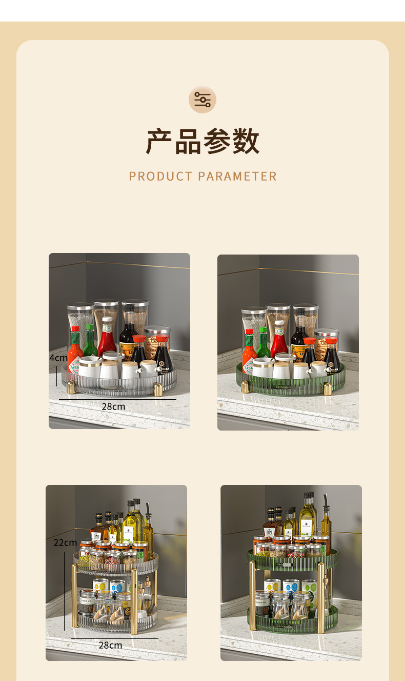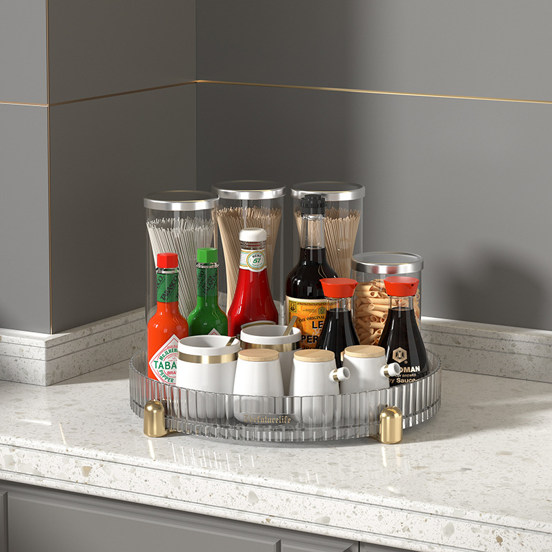 투명 다층 보관함 주방 용품 조미료 백화점 보관 트레이 가정용 다기능 데스크탑 회전 보관 랙스토어 가기