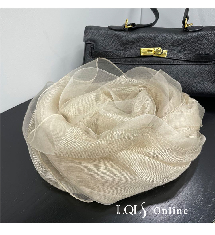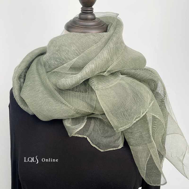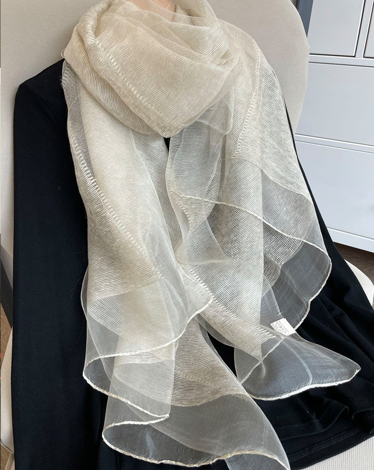 여성을위한 가볍고 얇은 더블 레이어 실크 혼합 베이지 스카프와 숄 봄, 가을 패션 숄 뽕나무 실크 거즈 스카프