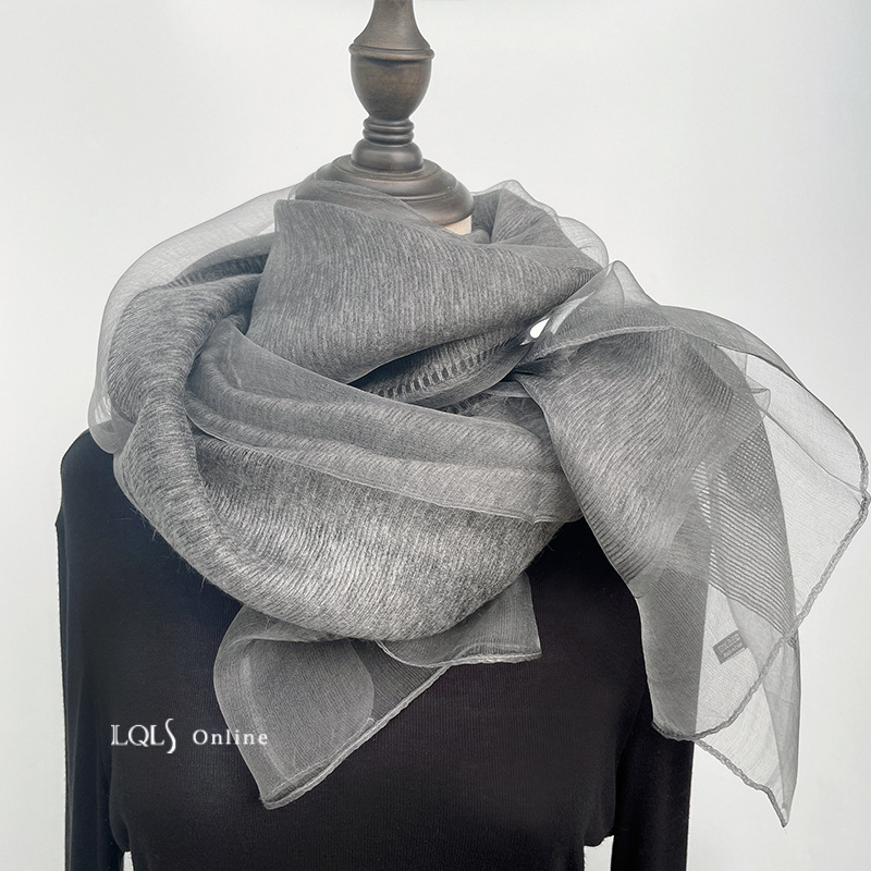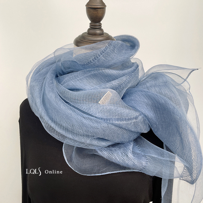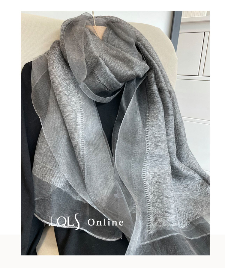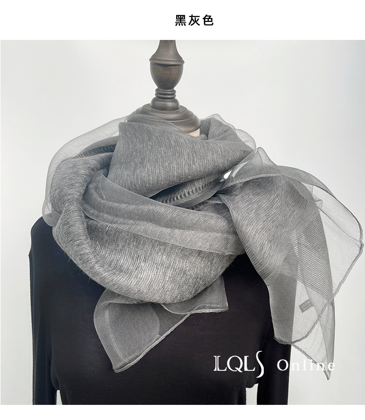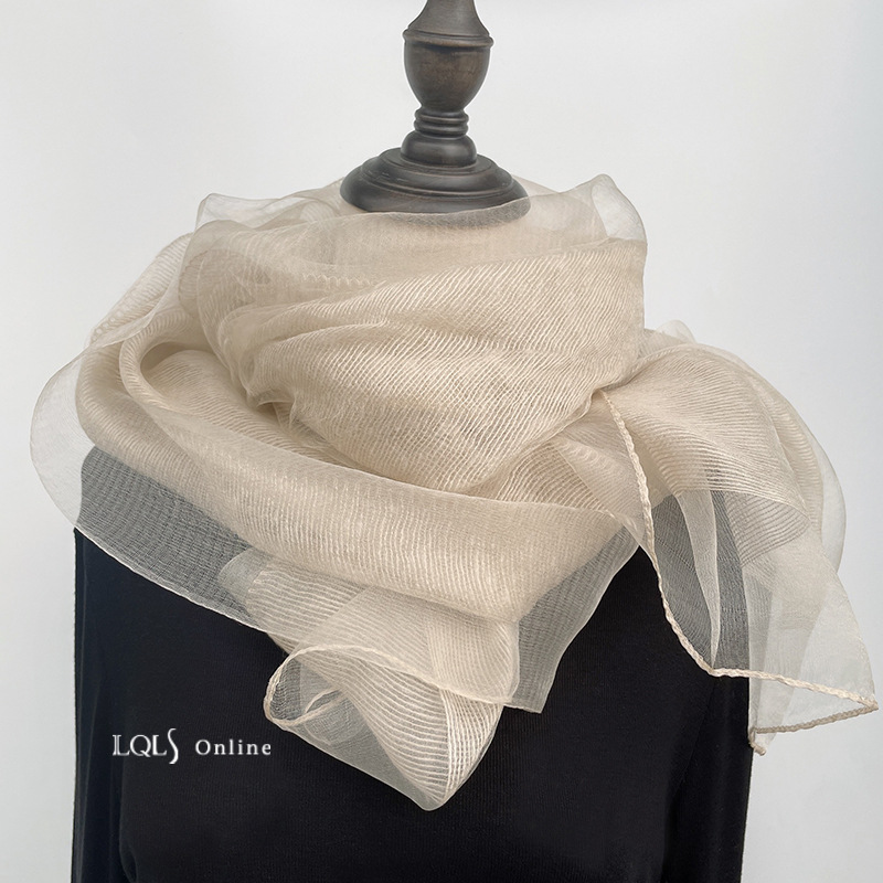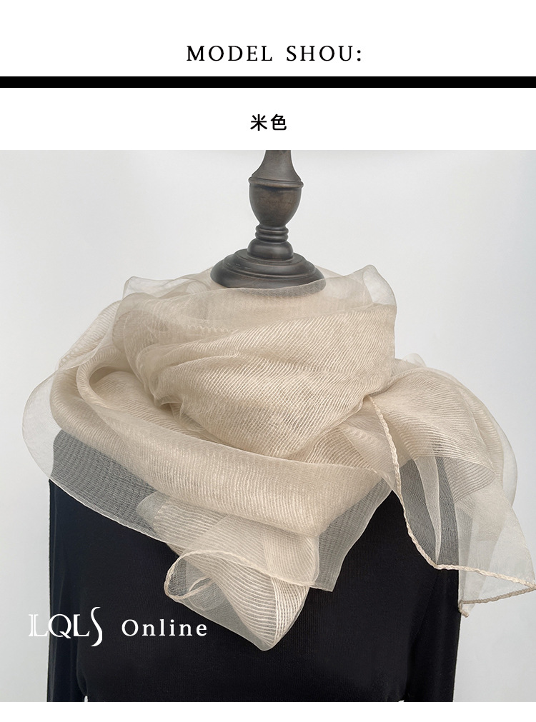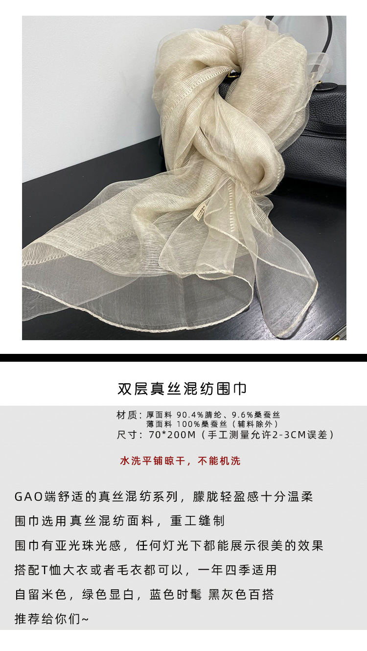여성을위한 가볍고 얇은 더블 레이어 실크 혼합 베이지 스카프와 숄 봄, 가을 패션 숄 뽕나무 실크 거즈 스카프스토어 가기