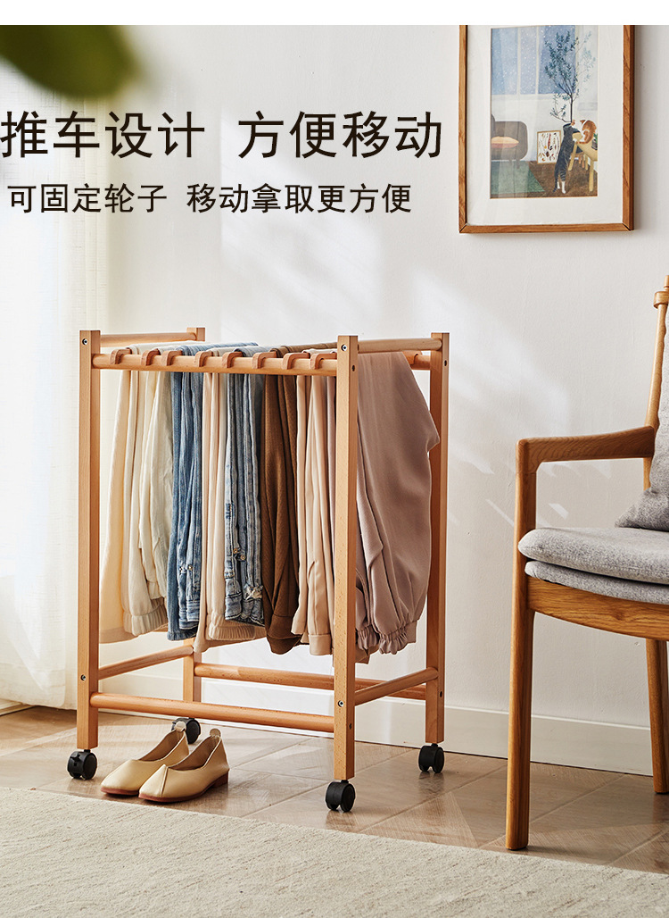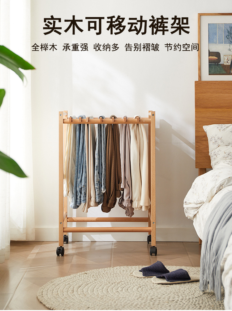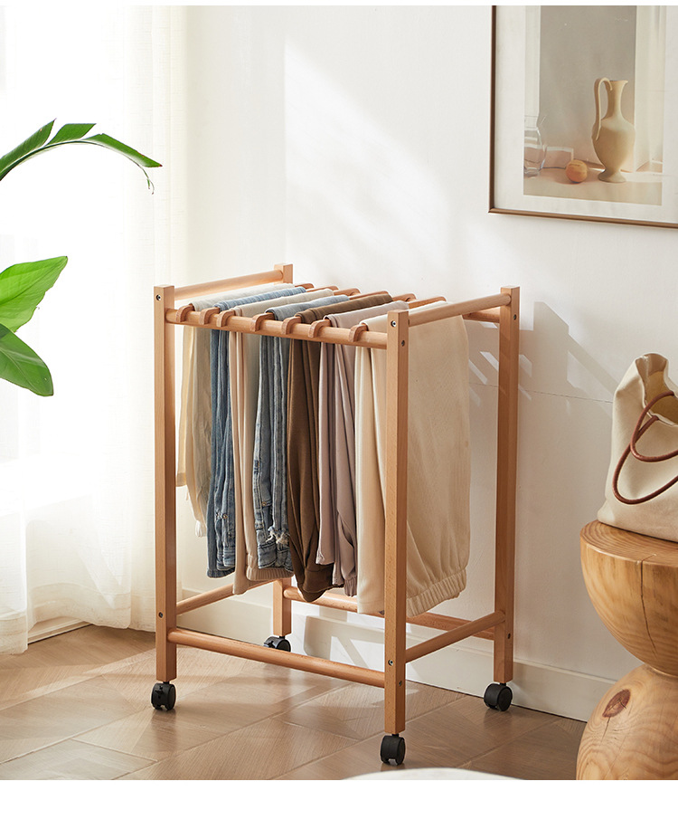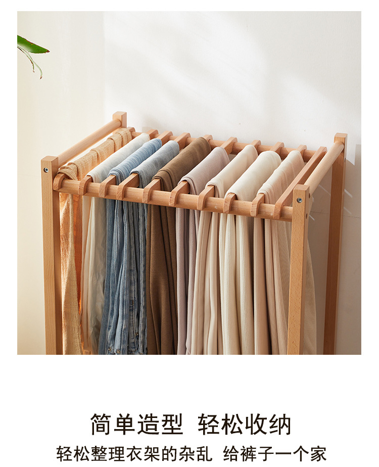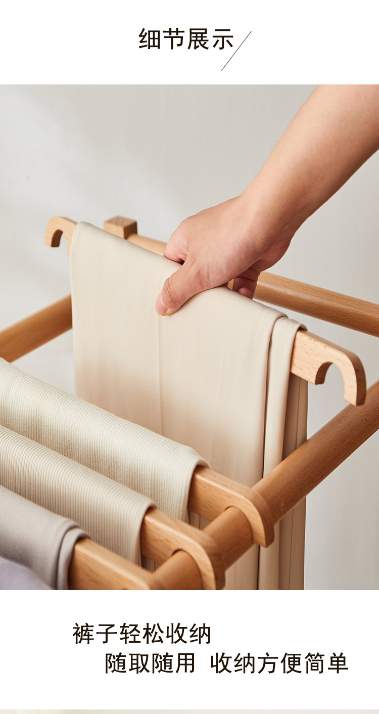 너도밤 나무 바닥 바지 보관 유물 단단한 나무 움직일 수있는 바지 랙 원활한 대형 옷걸이 바지 클립 마무리 바지 걸이