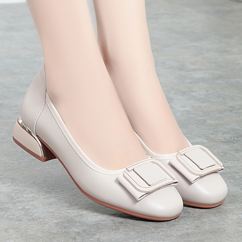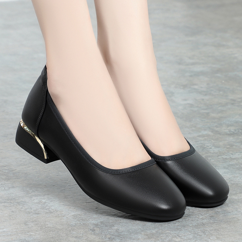 어머니 신발 봄과 가을 새로운 편안한 얕은 두꺼운 굽 플러스 사이즈 둥근 발가락 여성용 싱글 레이어 신발 낮은 굽 미끄럼 방지 중년 및 노인 여성 신발