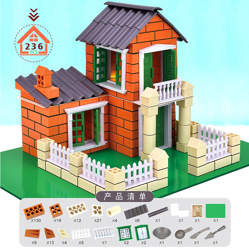 국경 간 수출 새로운 시뮬레이션 진흙 벽돌 건물 미니 벽돌 손으로 조립 하우스 빌라 모델 장난감