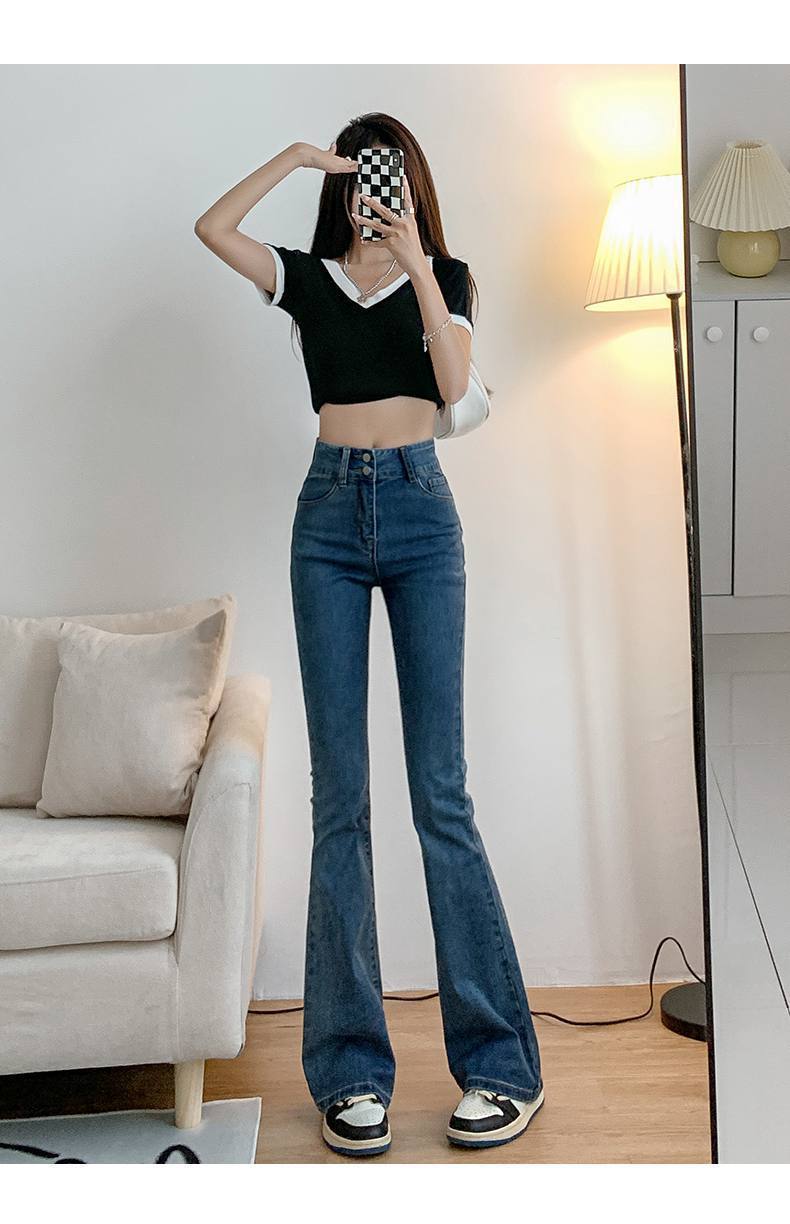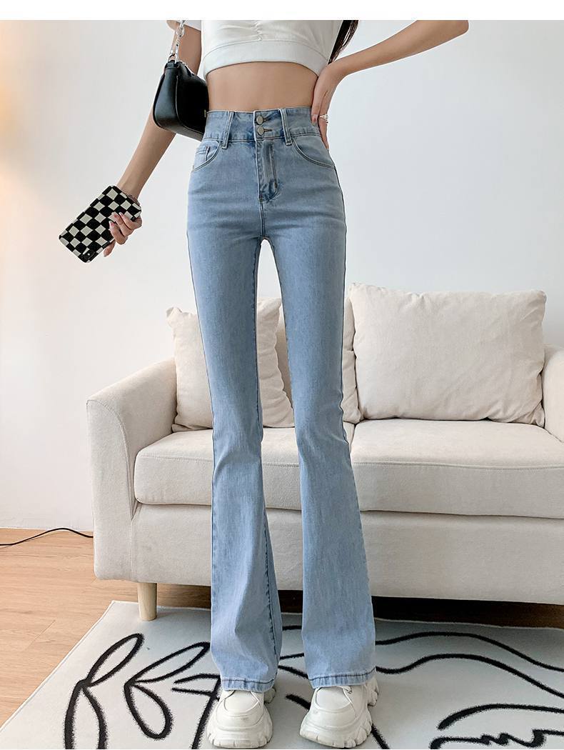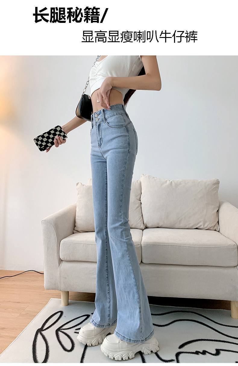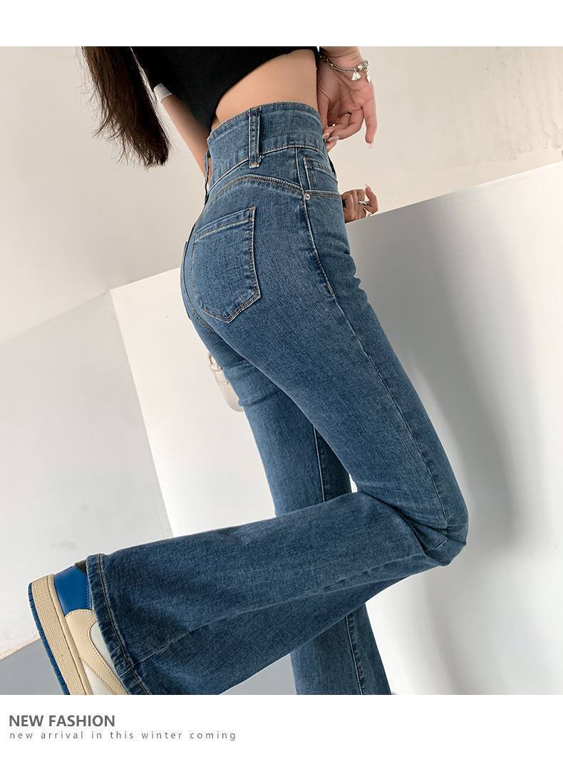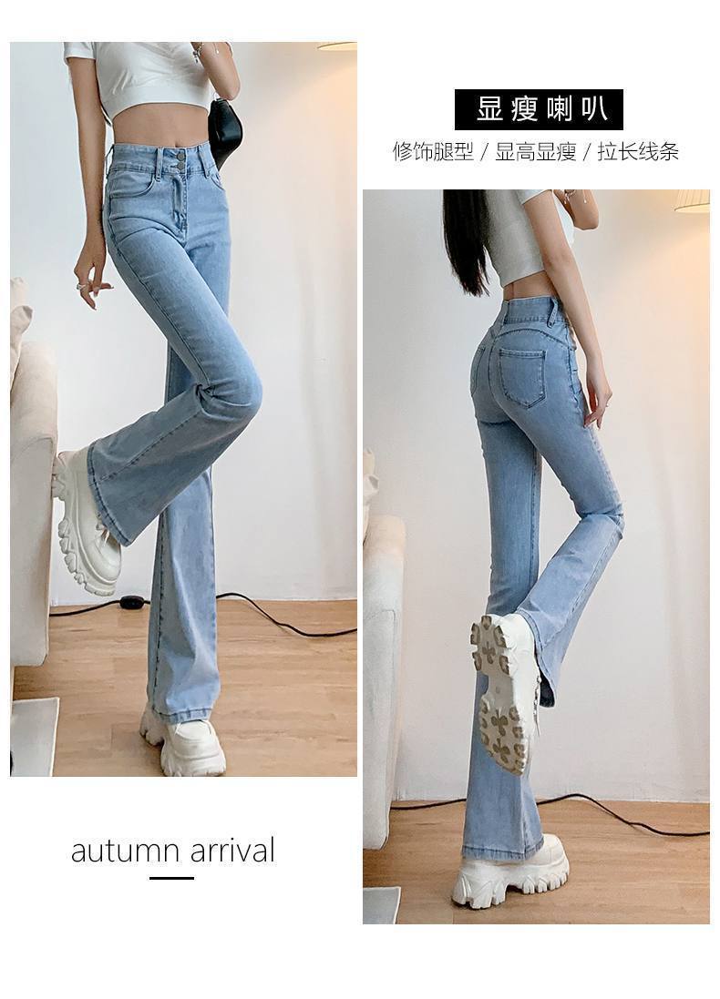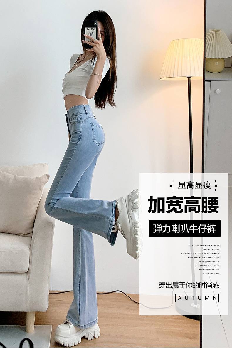 마이크로 혼 청바지 여성의 가을 한국 스타일 디자인 감각 틈새 하이 웨이스트 슬리밍 말굽 바지 트렌디 한 작은 하이 스트리트스토어 가기