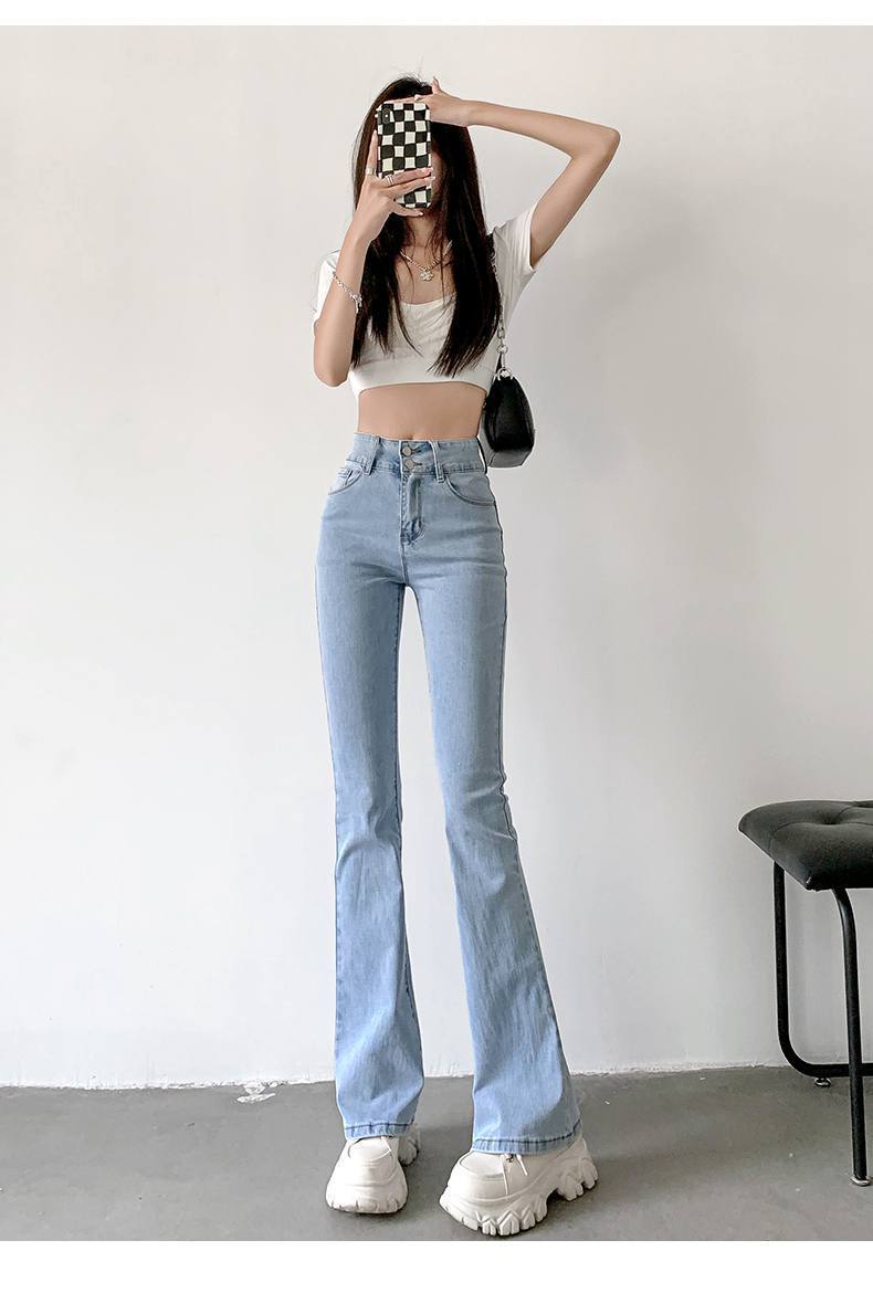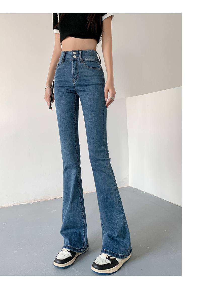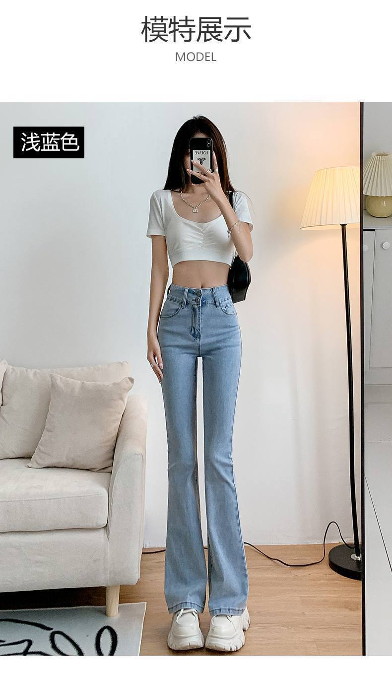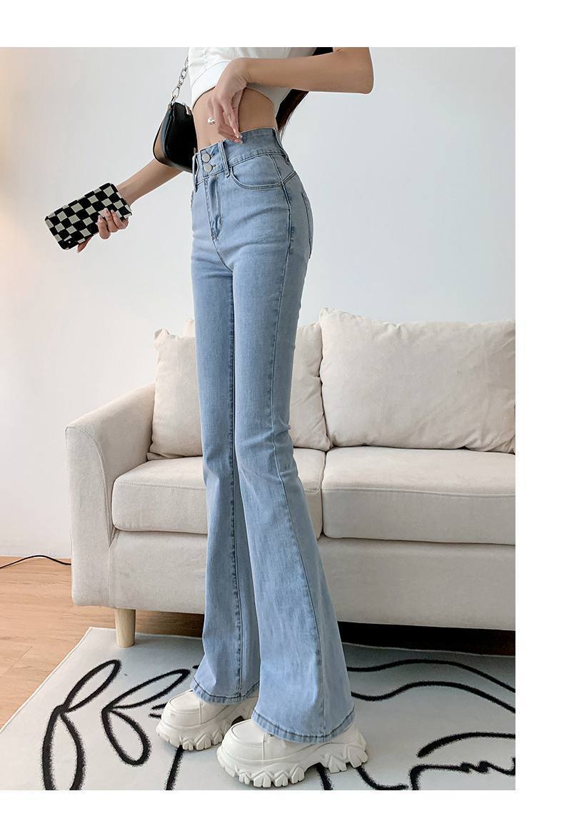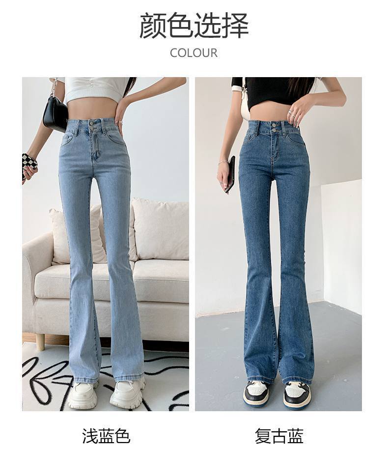 마이크로 혼 청바지 여성의 가을 한국 스타일 디자인 감각 틈새 하이 웨이스트 슬리밍 말굽 바지 트렌디 한 작은 하이 스트리트스토어 가기