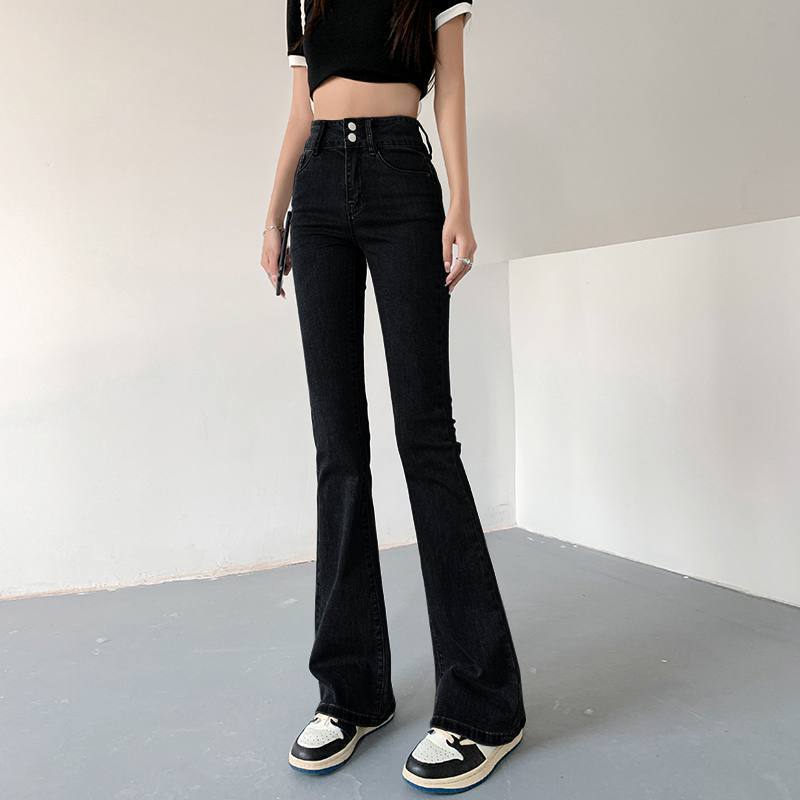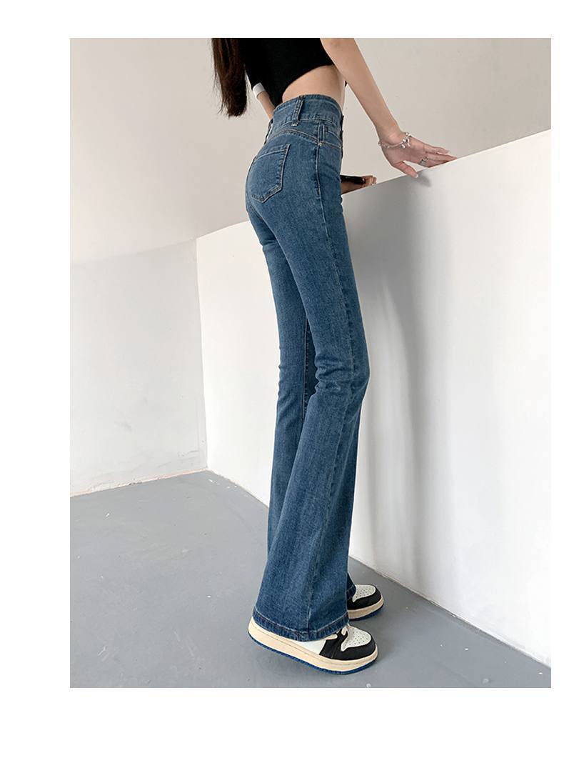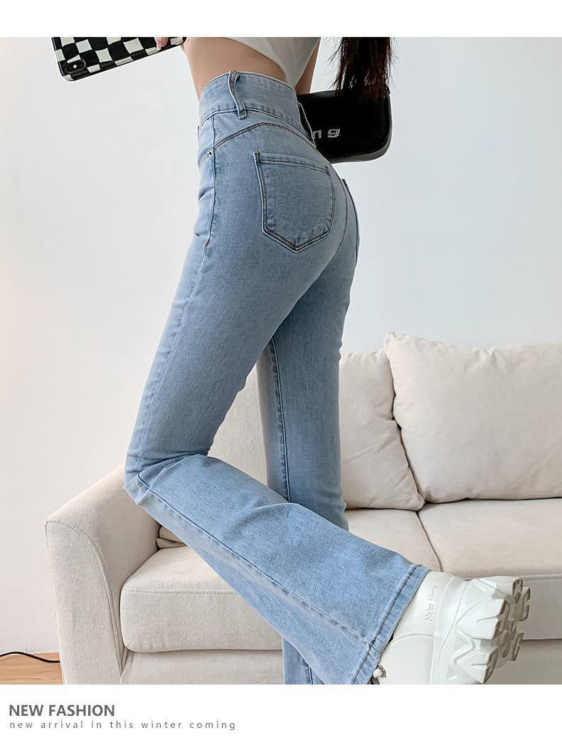 마이크로 혼 청바지 여성의 가을 한국 스타일 디자인 감각 틈새 하이 웨이스트 슬리밍 말굽 바지 트렌디 한 작은 하이 스트리트