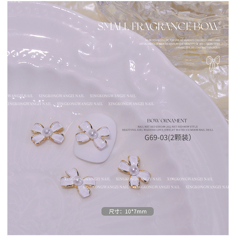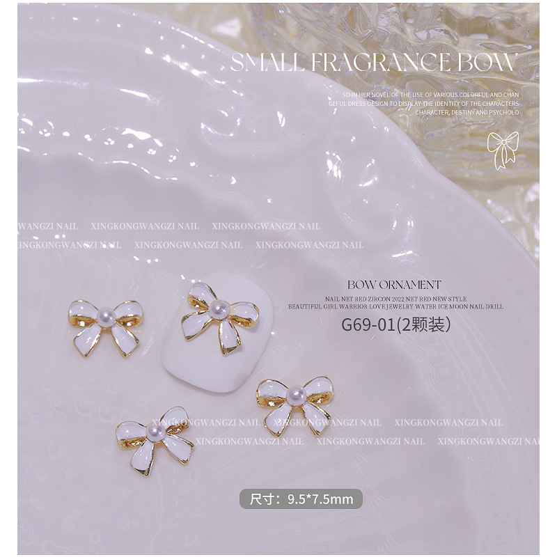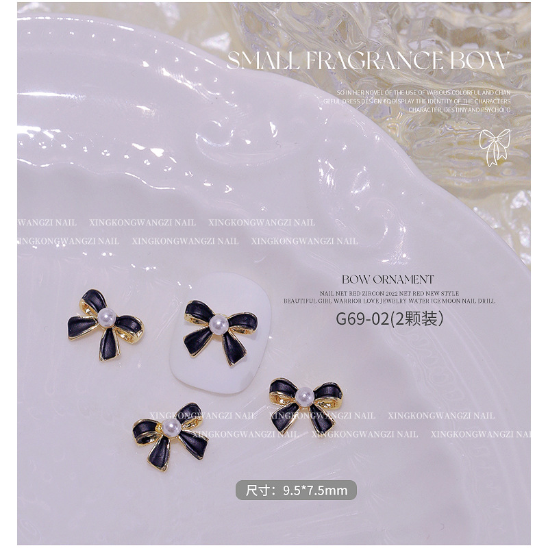 프랑스 네일 아트 그물 빨간 작은 향기로운 바람 진주 활 보석 흑백 간단한 소녀 네일 장식 2 도매