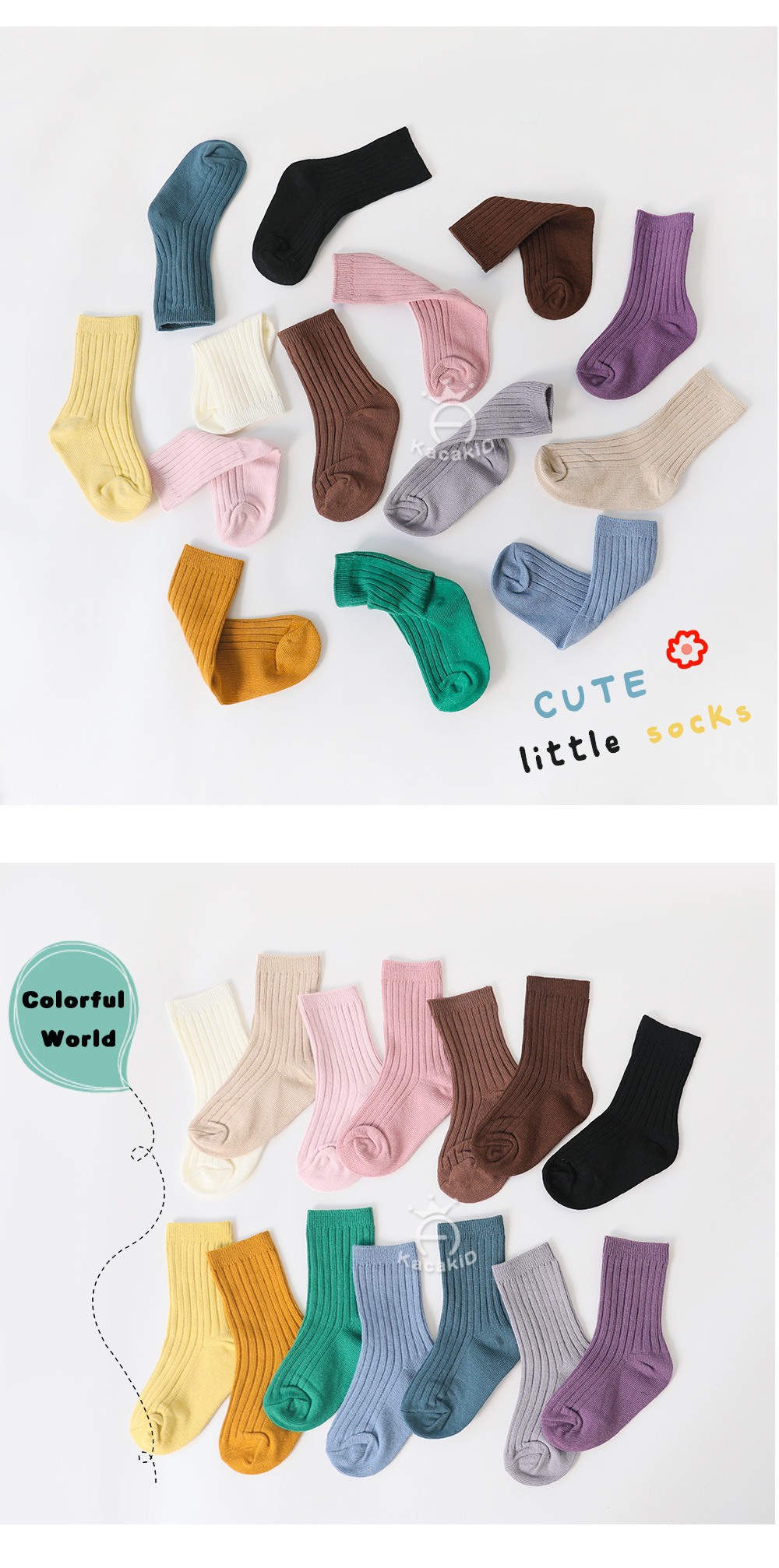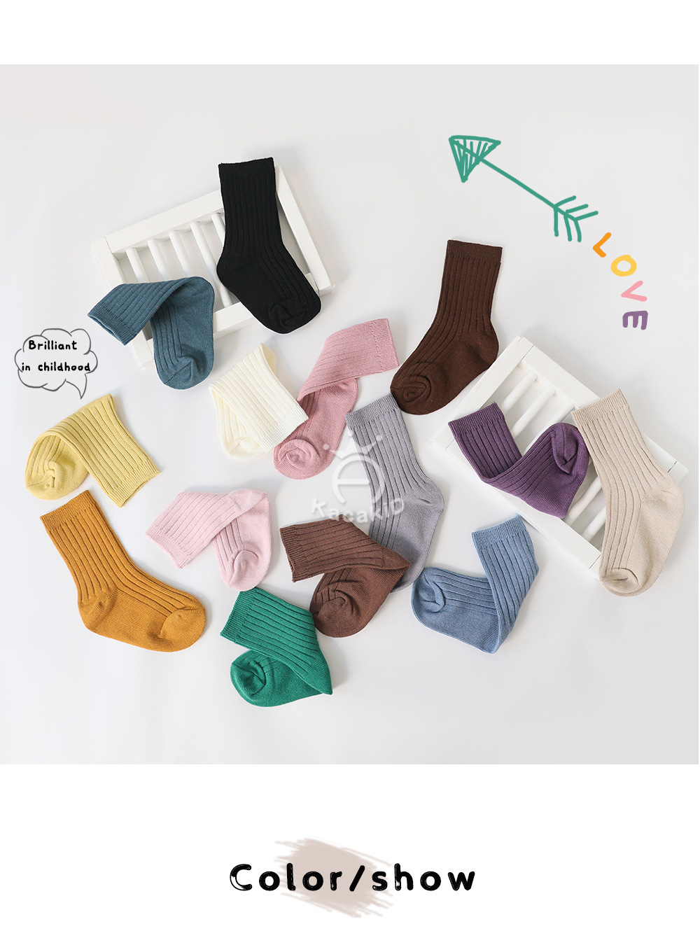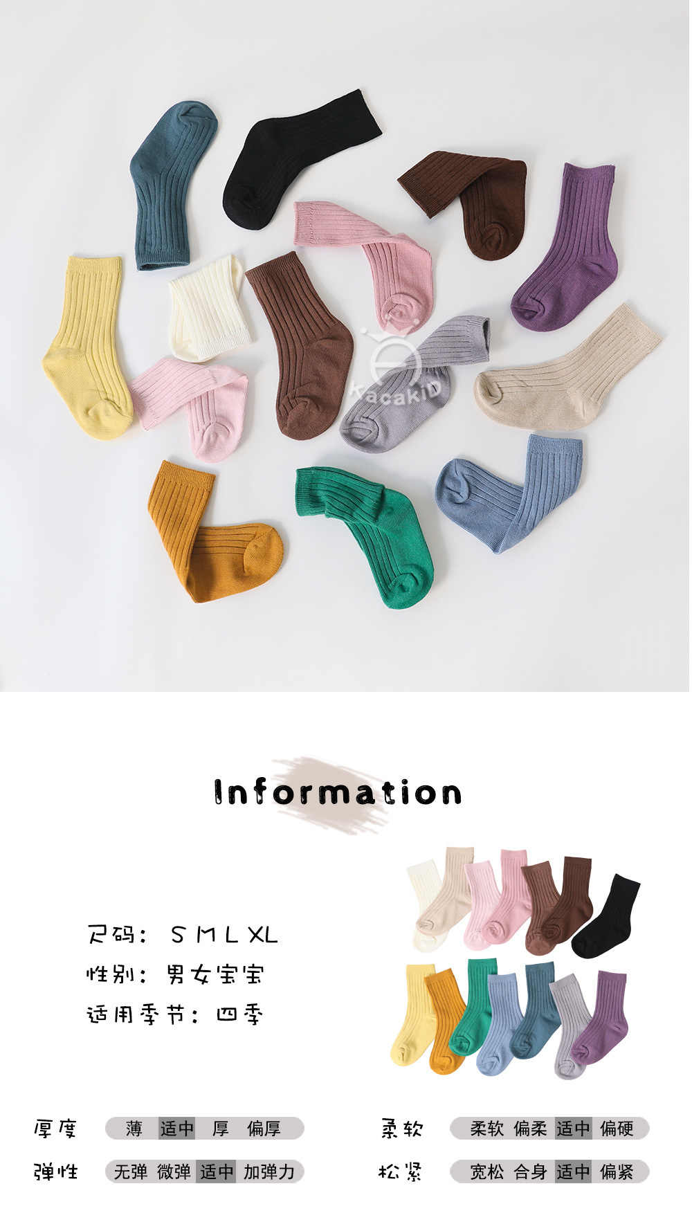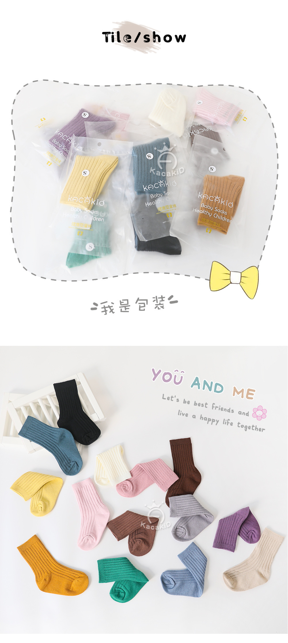 어린이 봄 가을 A급 면 양말 남아 여아 양말 단색 중목 양말 아기용 양말 도매 가을 겨울