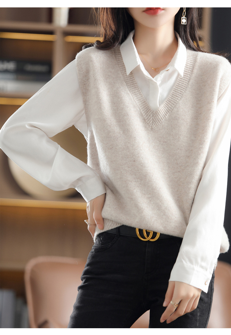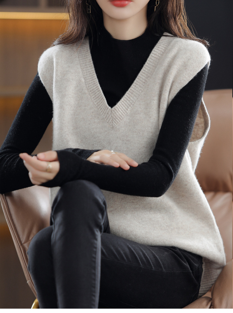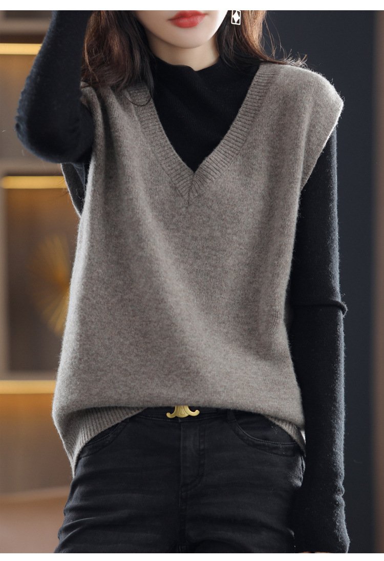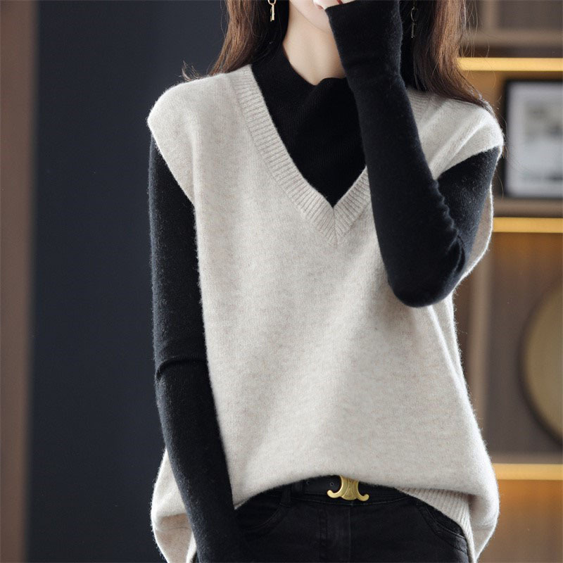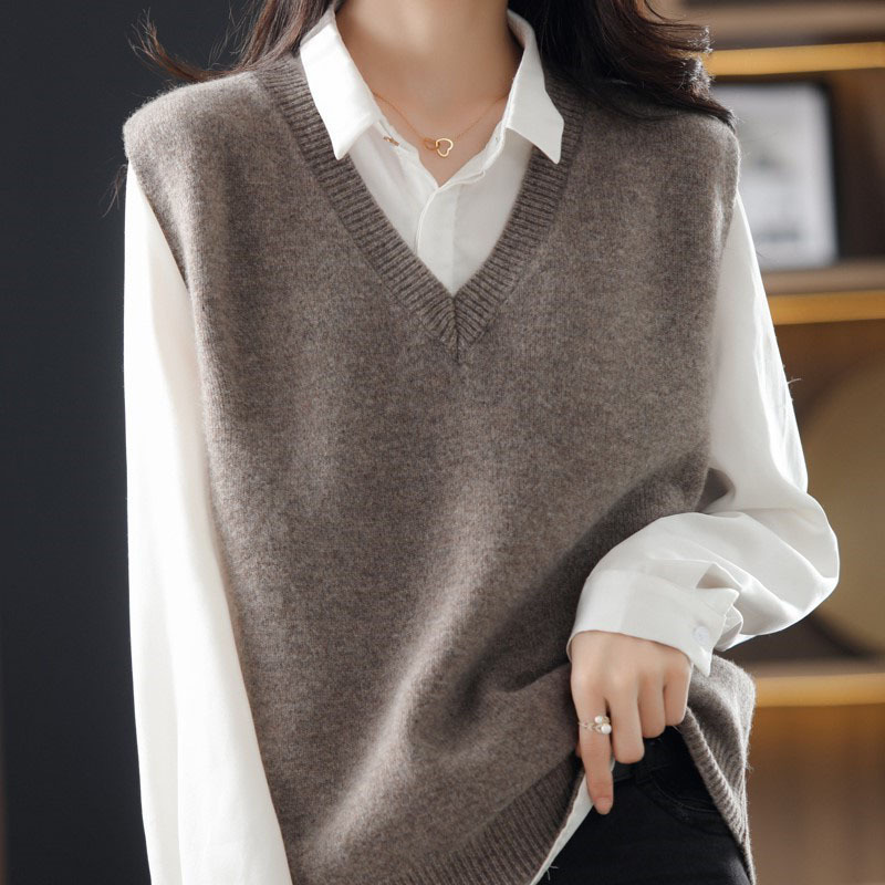 여성용 조끼 스웨터 봄 가을 2025 신상 가을 조끼 외투 브이넥 니트 조끼 외투용
