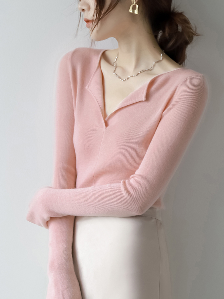 MZONXO 젠틀 스타일 탑 이른 가을 캐시미어 우아한 모든 매치 게으른 울 스웨터 디자인 심플 니트 스웨터