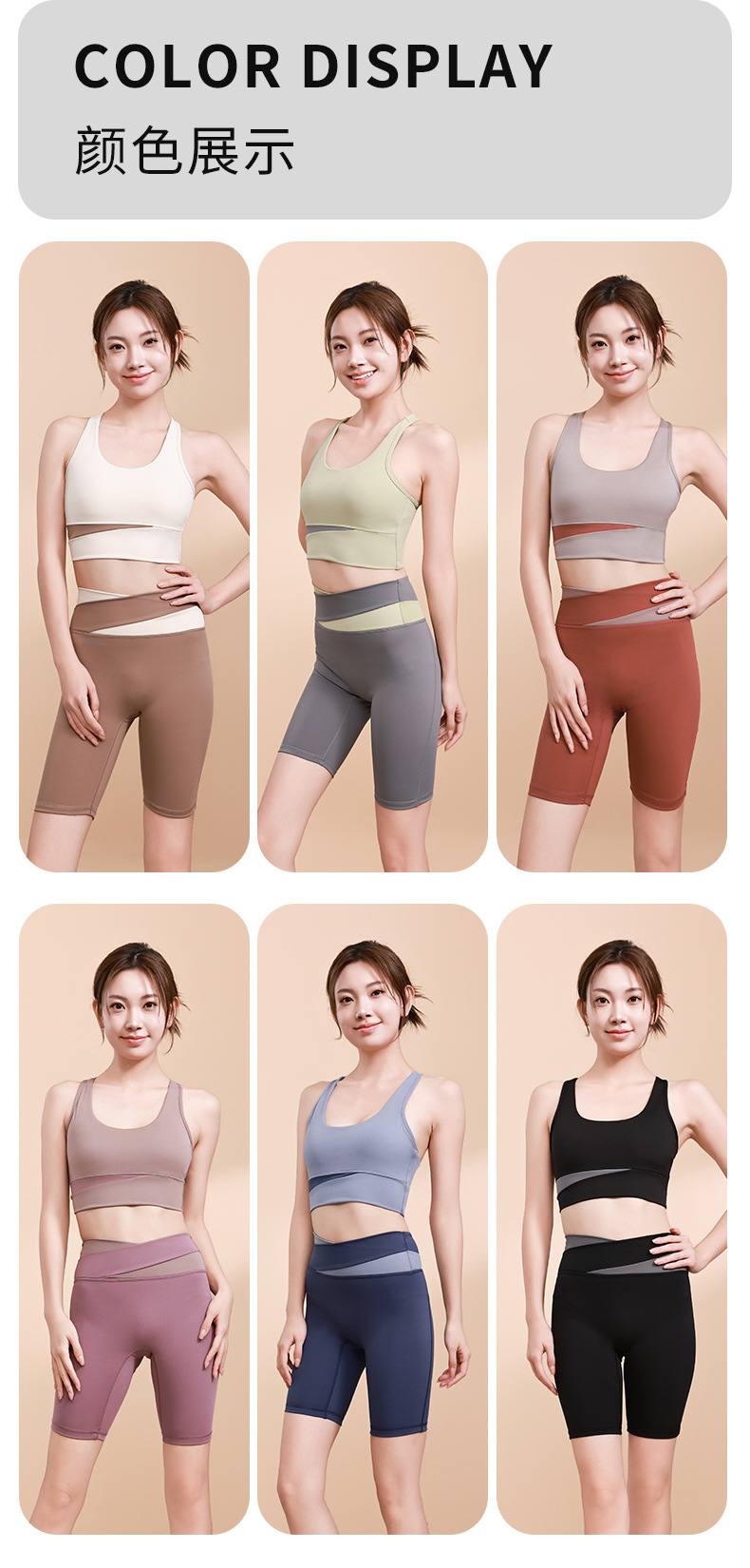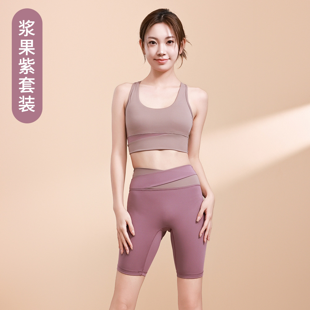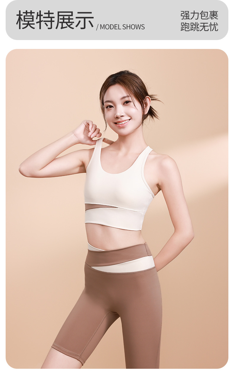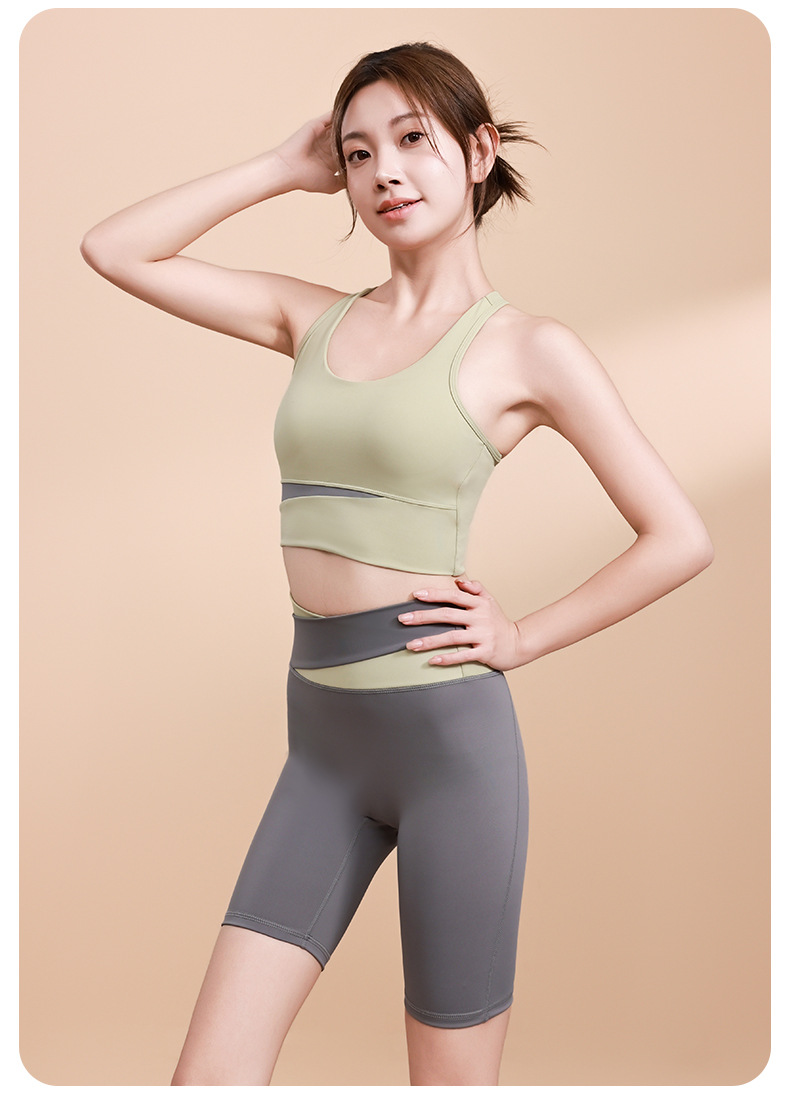 컬러 매칭 하이 웨이스트 배꼽 턱걸이 복숭아 엉덩이 배꼽 노출 요가 의류 반바지 세트 충격 방지 수집 허리 보호 다리 슬리밍 피트니스 브라