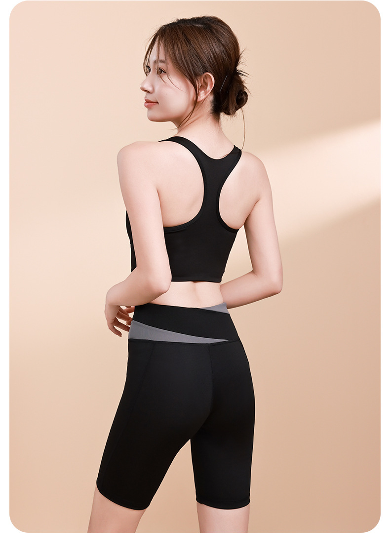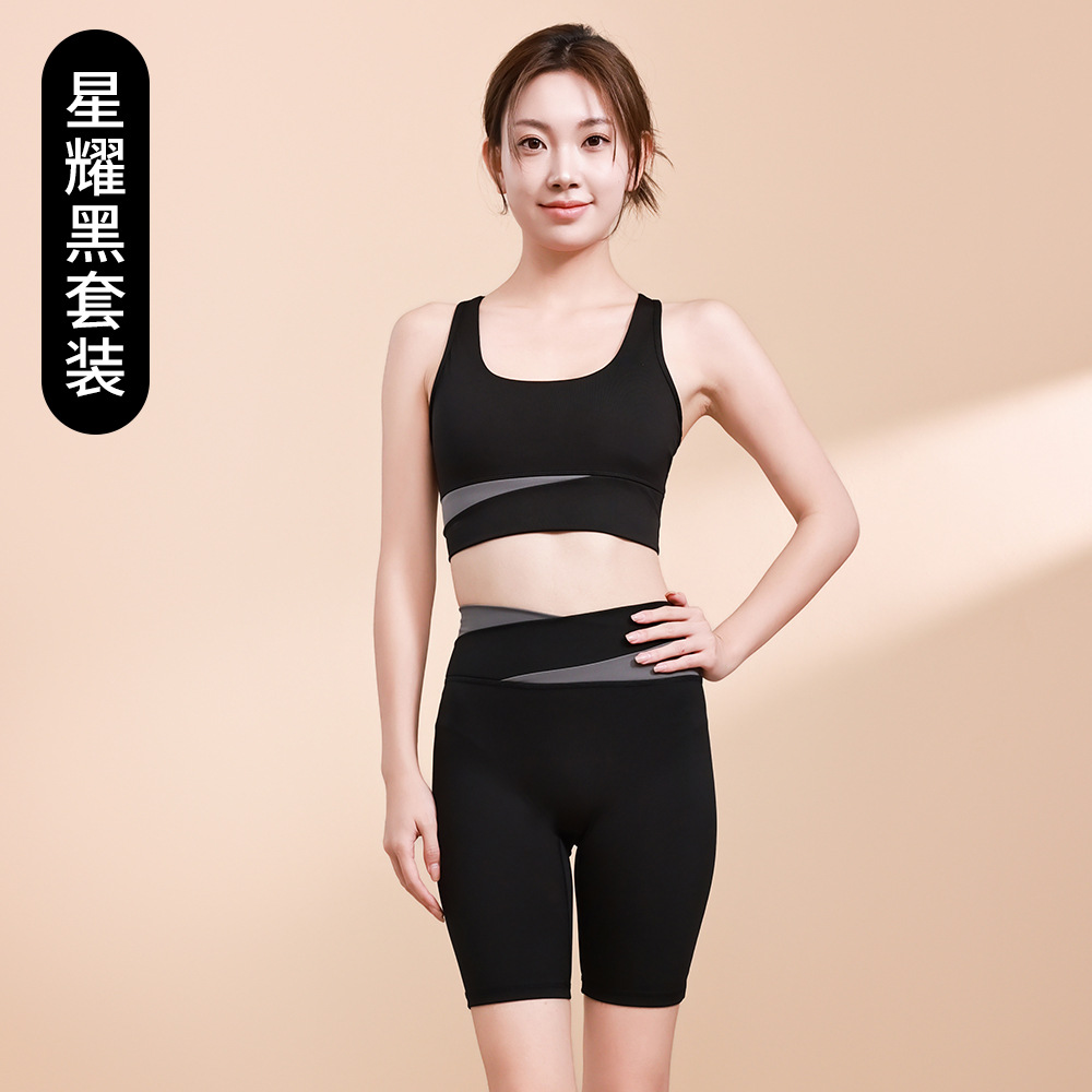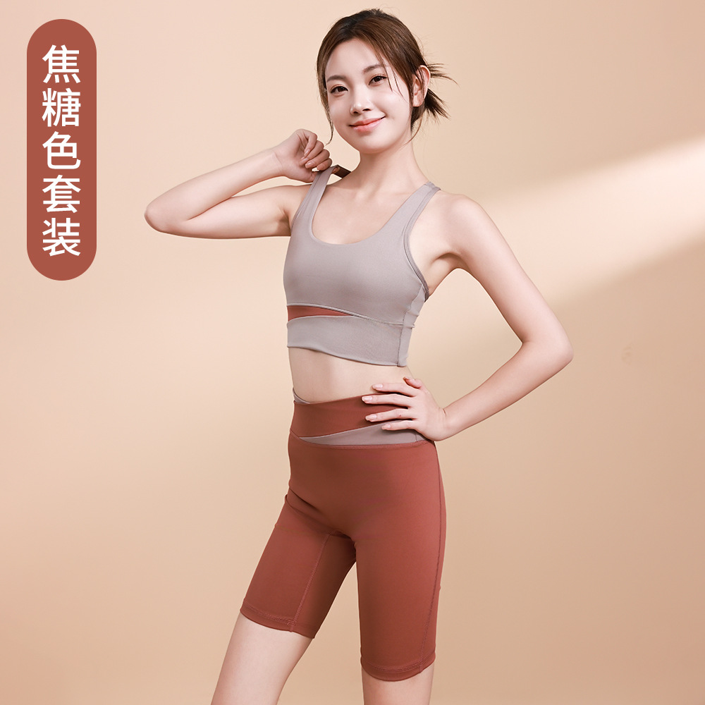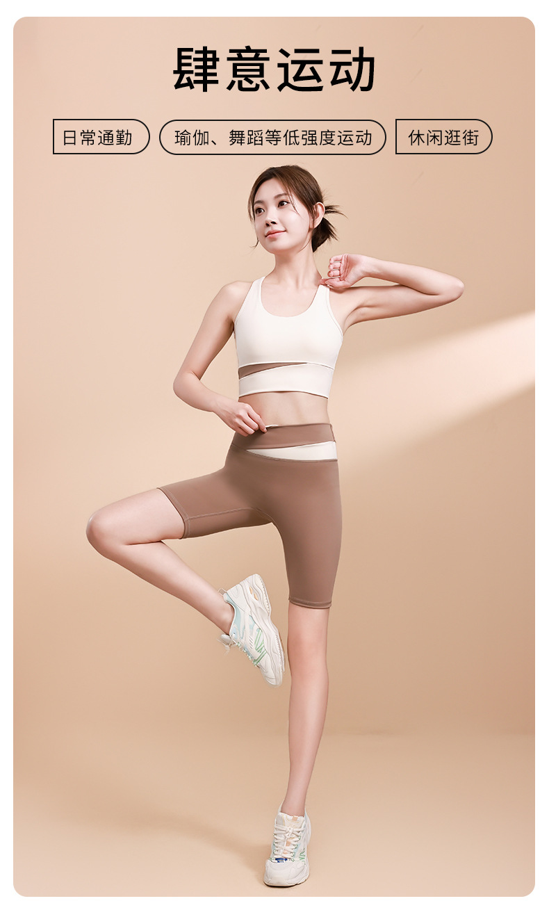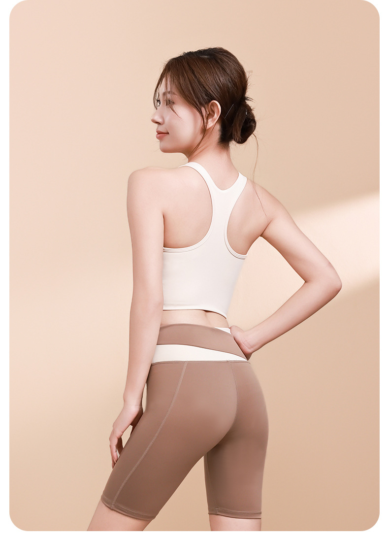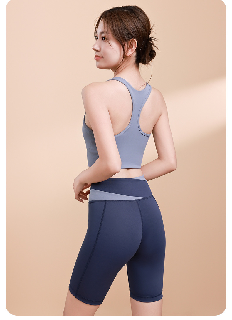 컬러 매칭 하이 웨이스트 배꼽 턱걸이 복숭아 엉덩이 배꼽 노출 요가 의류 반바지 세트 충격 방지 수집 허리 보호 다리 슬리밍 피트니스 브라스토어 가기