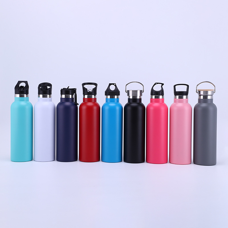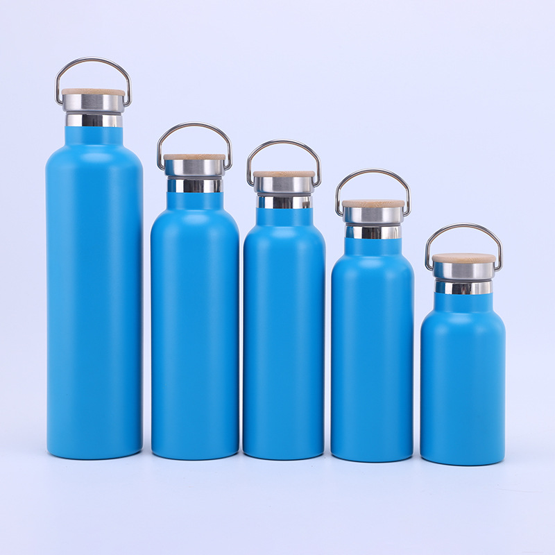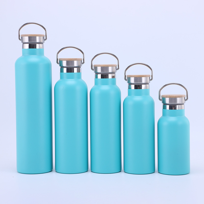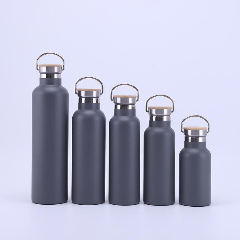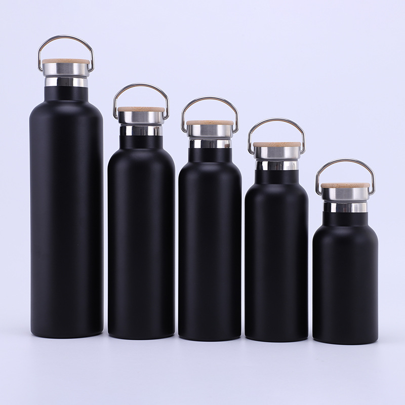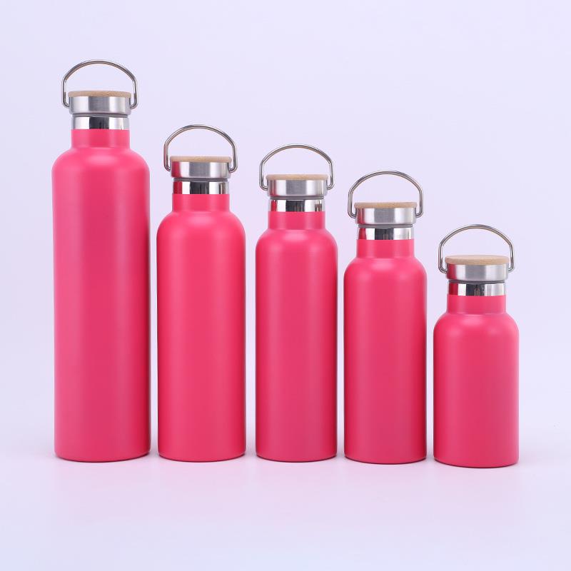 600ml 미국식 큰 입 보온병 스테인레스 스틸 대용량 스포츠 주전자 등산 여행용 야외 휴대용 대나무 커버