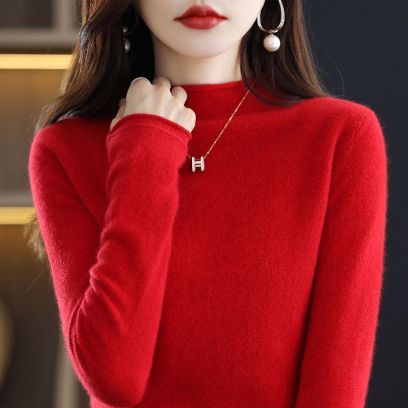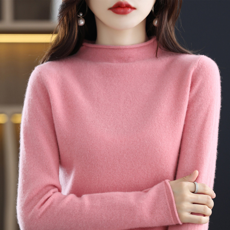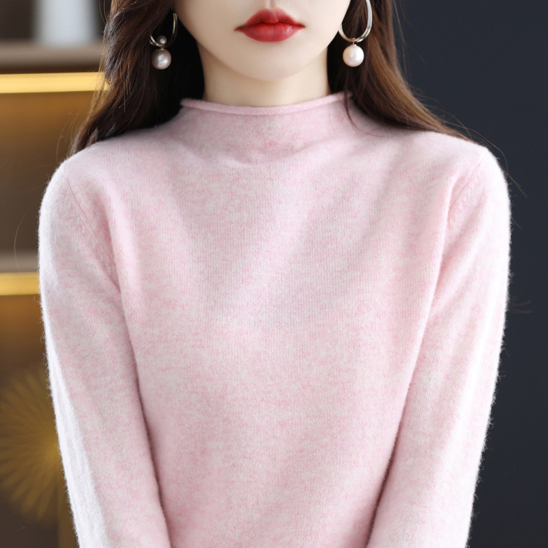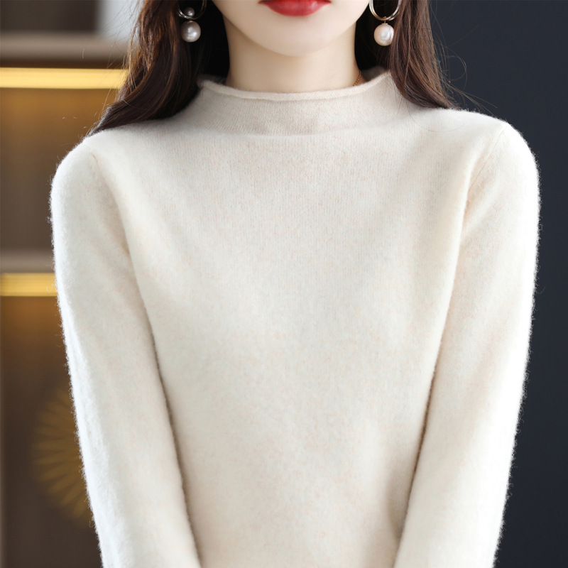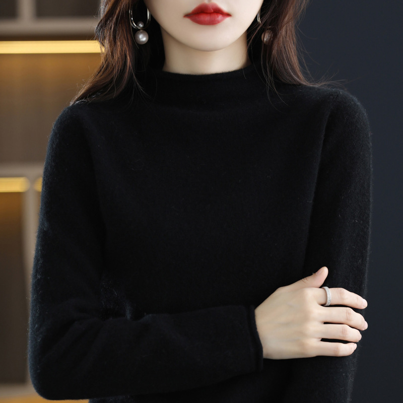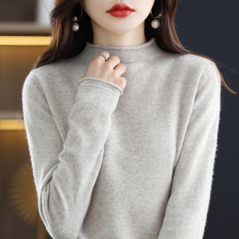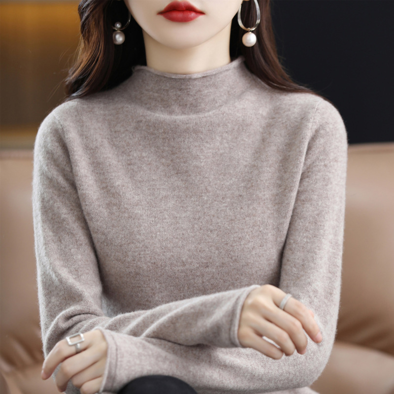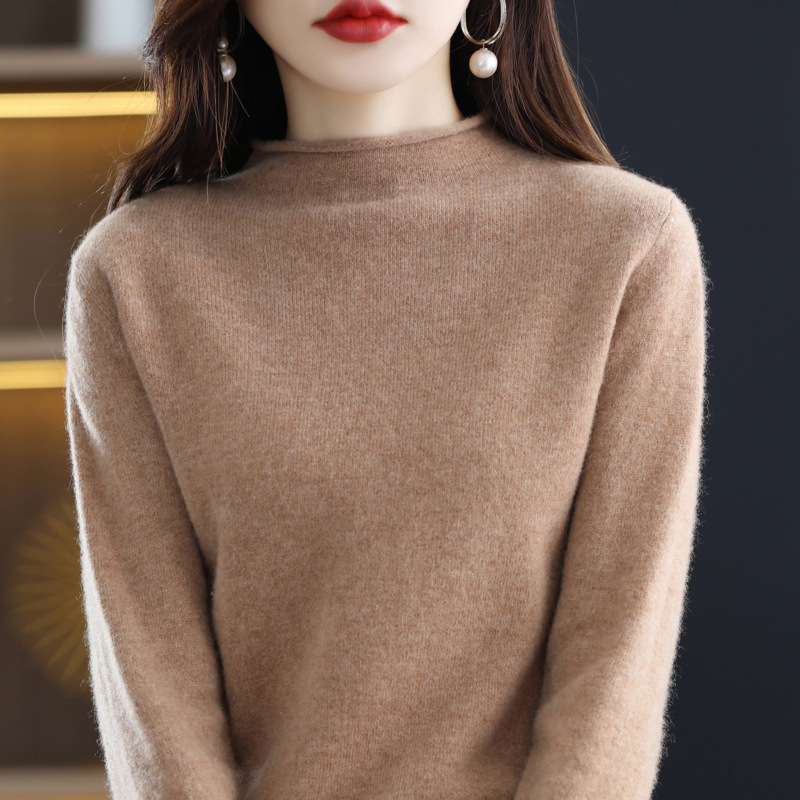힙 칼라 컬 울 스웨터 여성용 100 퓨어 울베이스 셔츠 2023 새로운 겨울 웨스턴 스타일 니트 캐시미어 스웨터