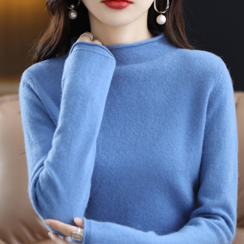 힙 칼라 컬 울 스웨터 여성용 100 퓨어 울베이스 셔츠 2023 새로운 겨울 웨스턴 스타일 니트 캐시미어 스웨터스토어 가기