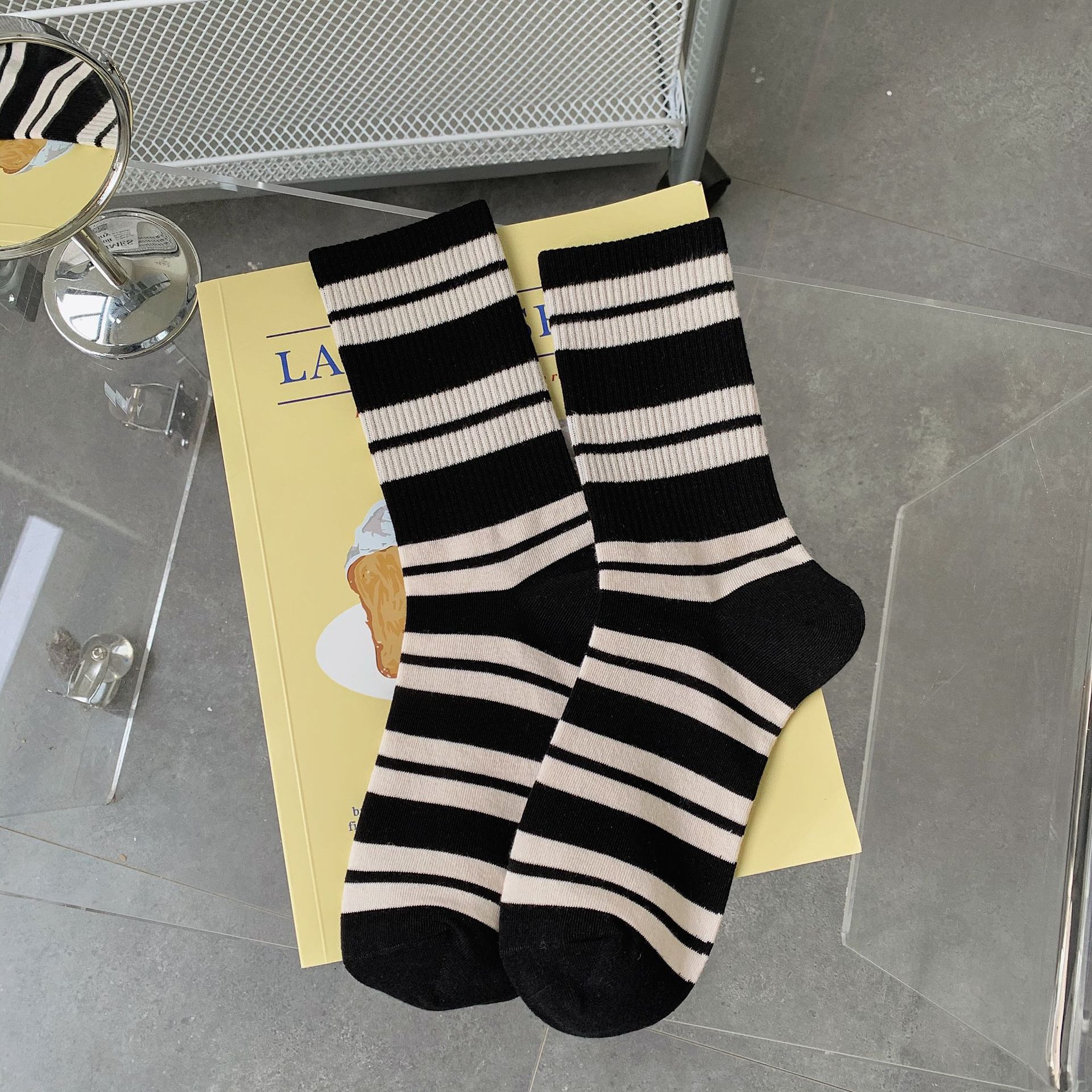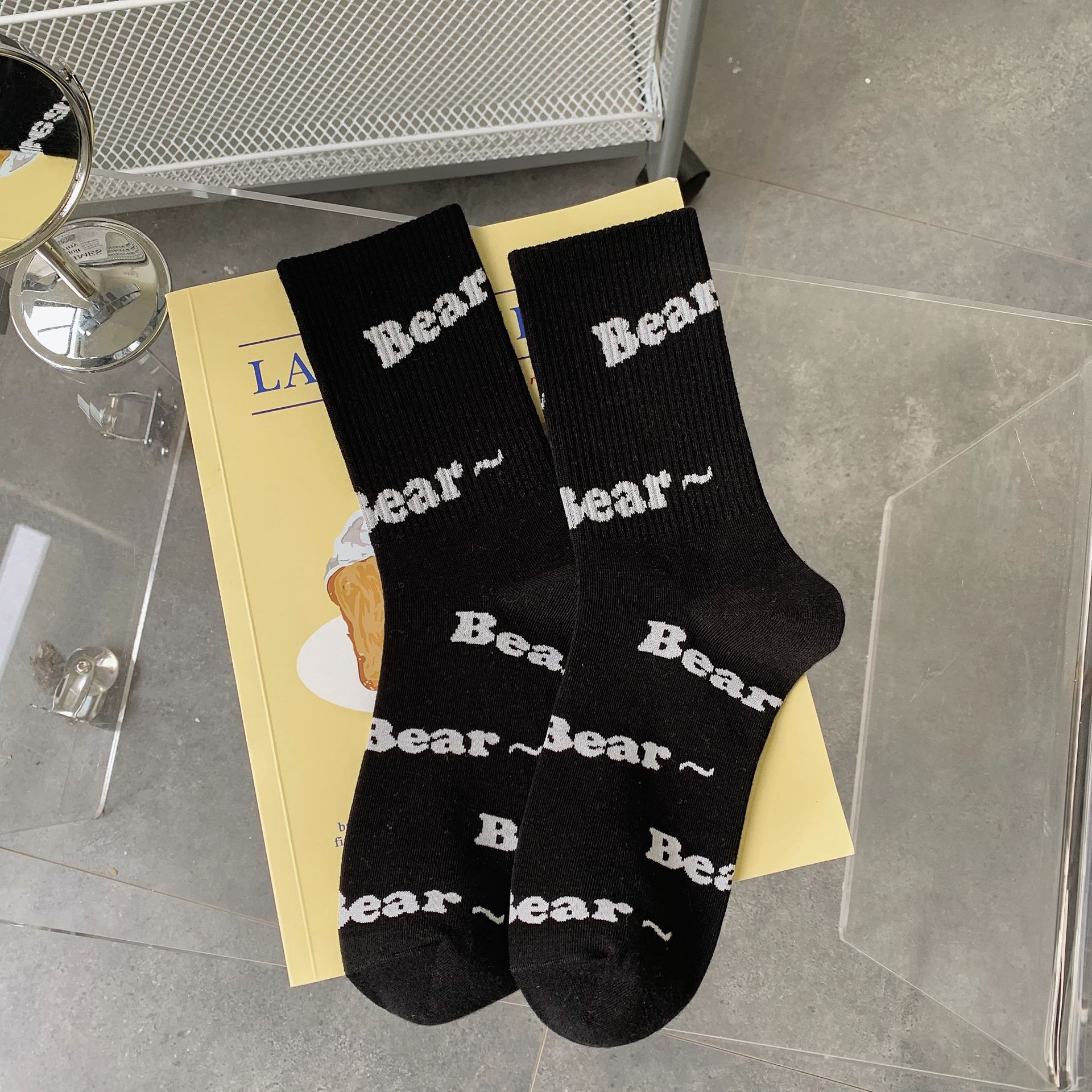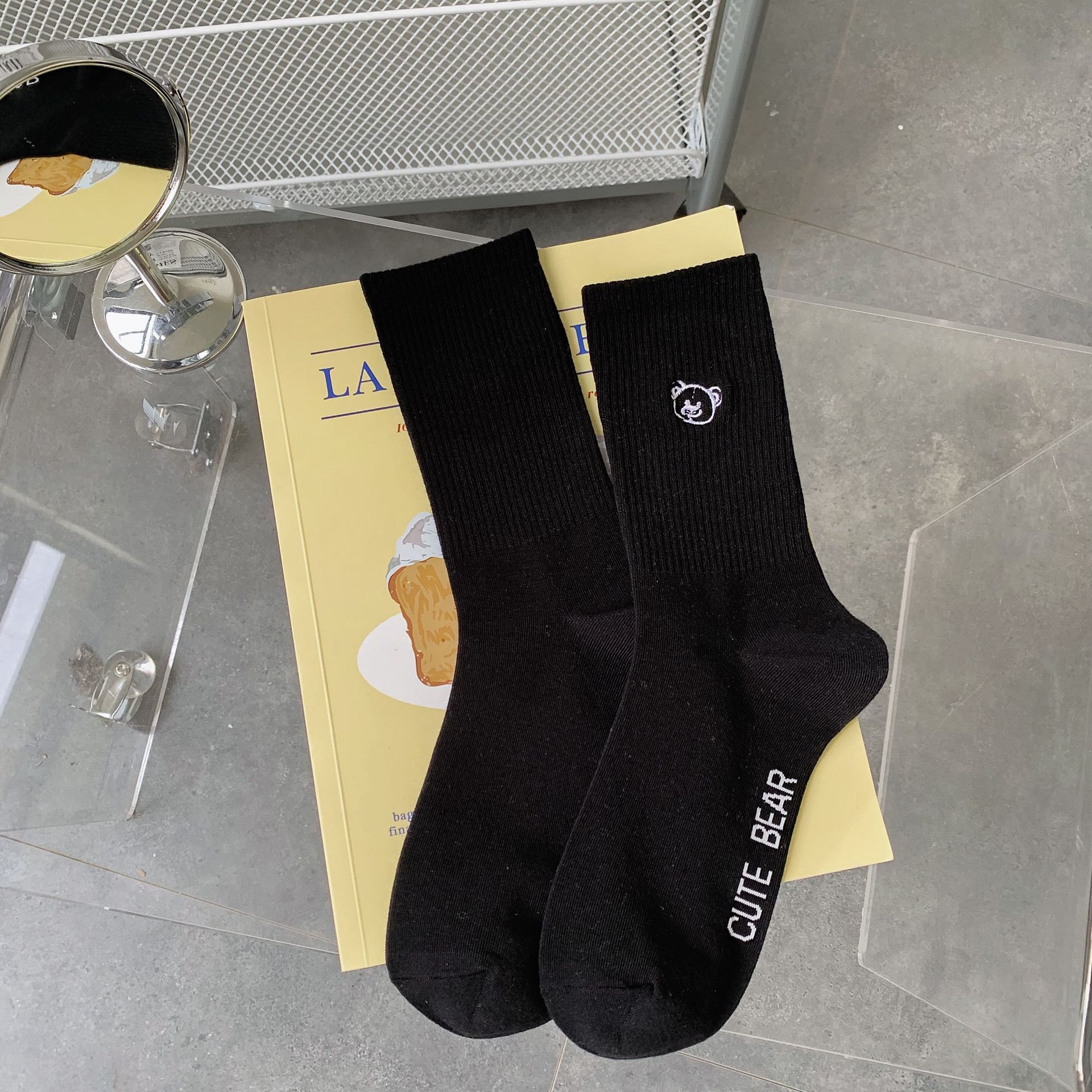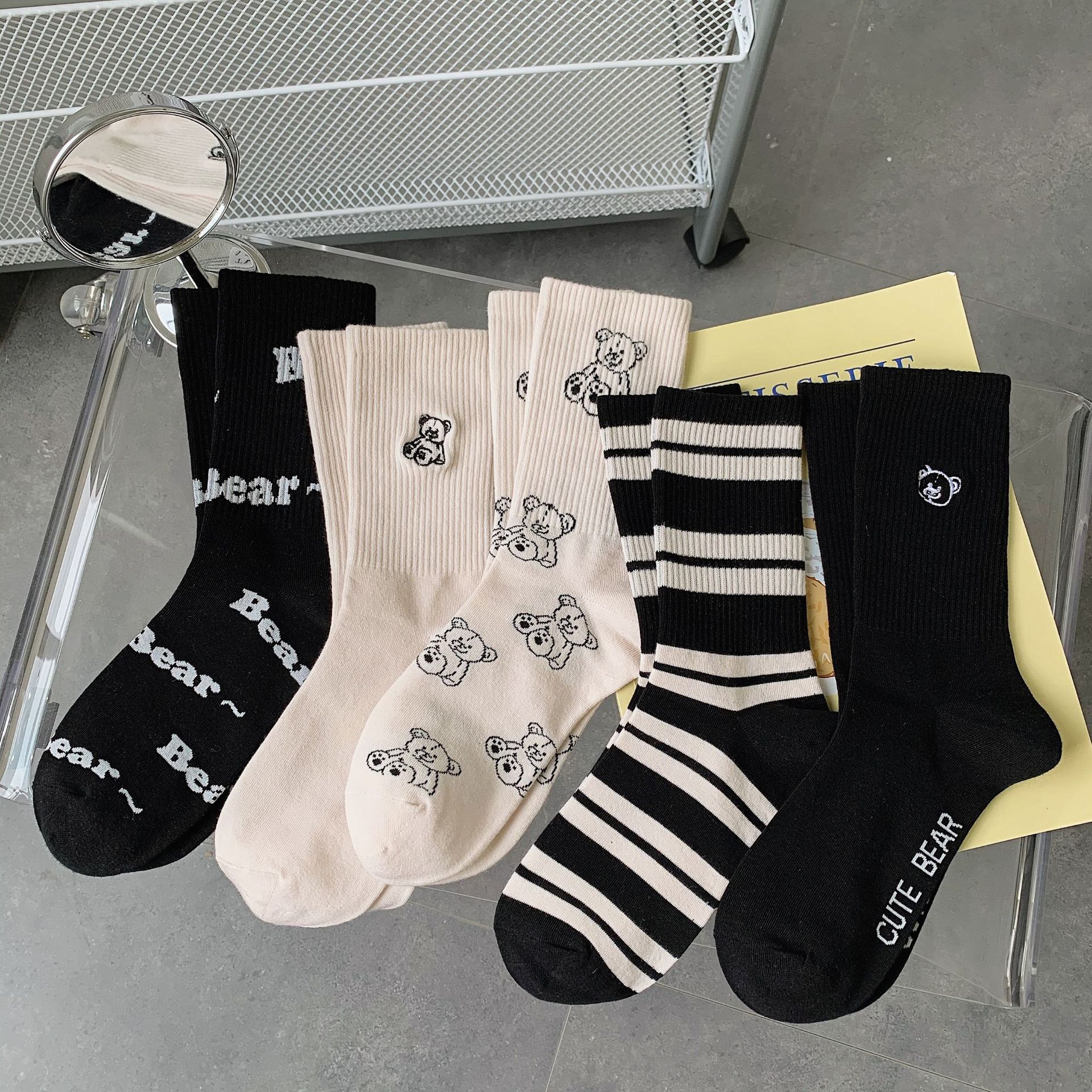 22 가을과 겨울 클래식 흑백 만화 곰 여성의 중간 종아리 길이 양말 일본 다재다능한 프레피 스타일 달콤한 곰 인쇄 여성 양말스토어 가기