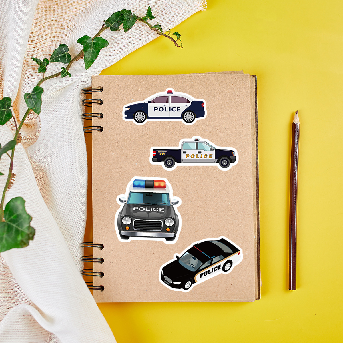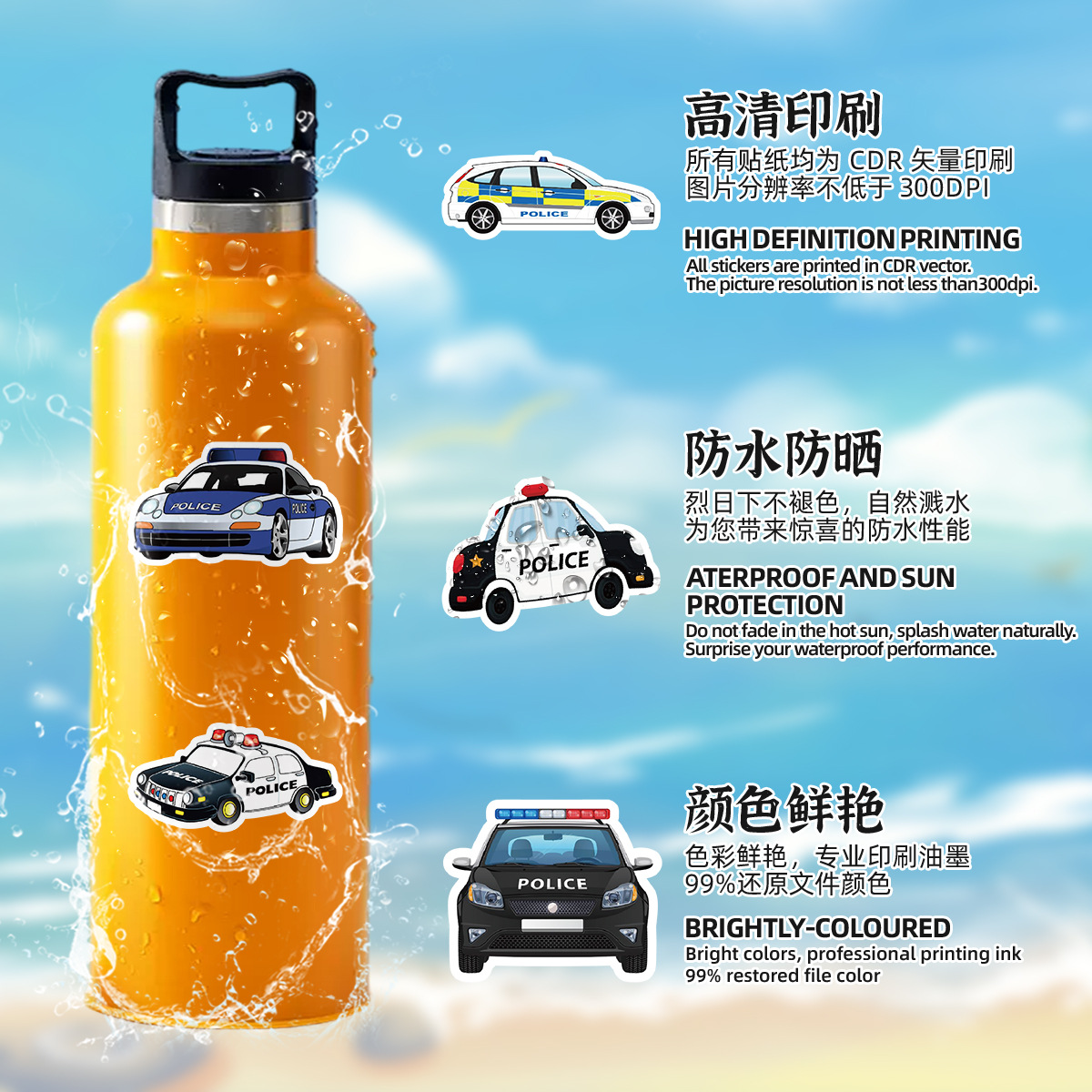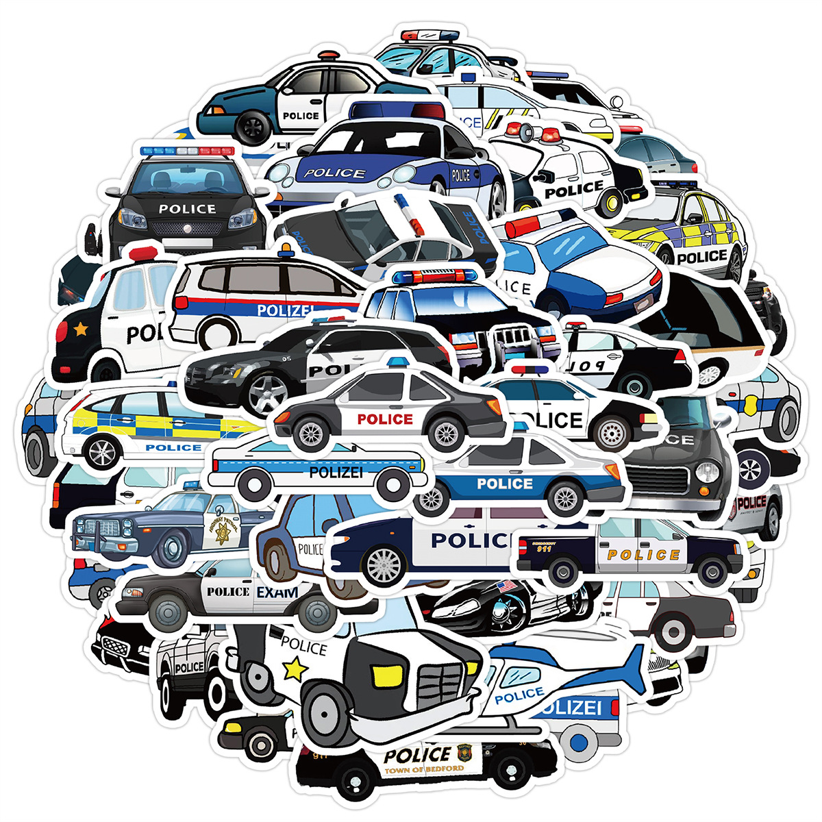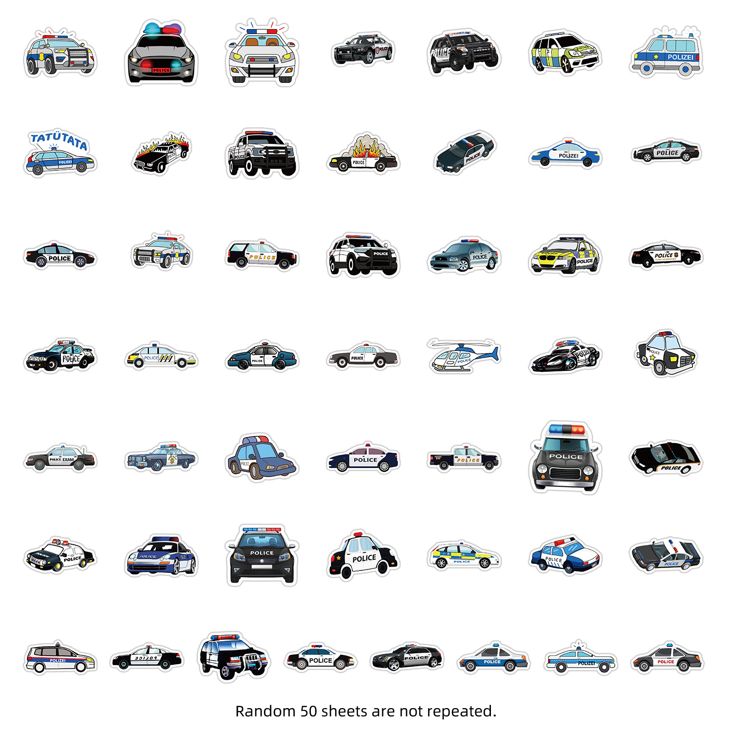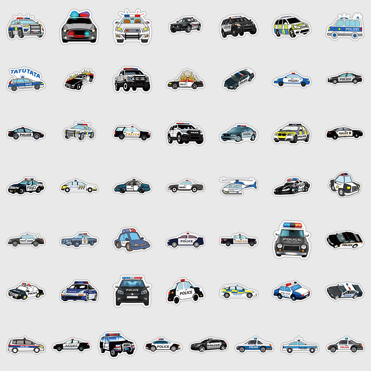 50 어린이 만화 경찰차 스티커 휴대 전화 컵 컴퓨터 장식 스티커 노트북 손 계정 방수 스티커