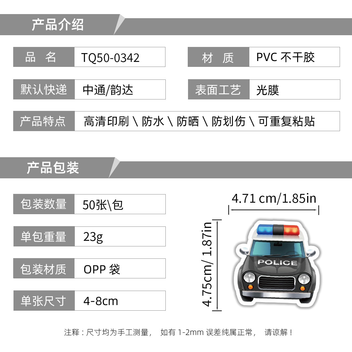 50 어린이 만화 경찰차 스티커 휴대 전화 컵 컴퓨터 장식 스티커 노트북 손 계정 방수 스티커스토어 가기