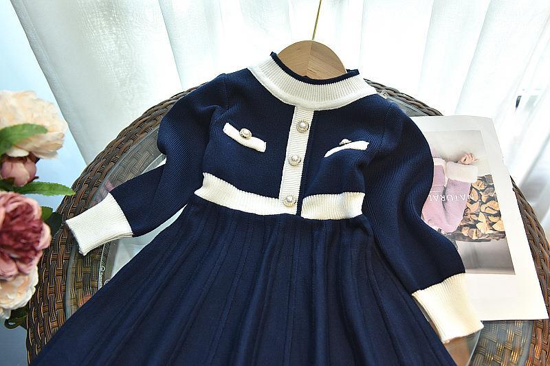 겨울과 가을 아동복 한국식 여아 원피스 어린이 단색 니트 여성용 보물 A-라인 스커트 여아 니트 플리츠 스커트