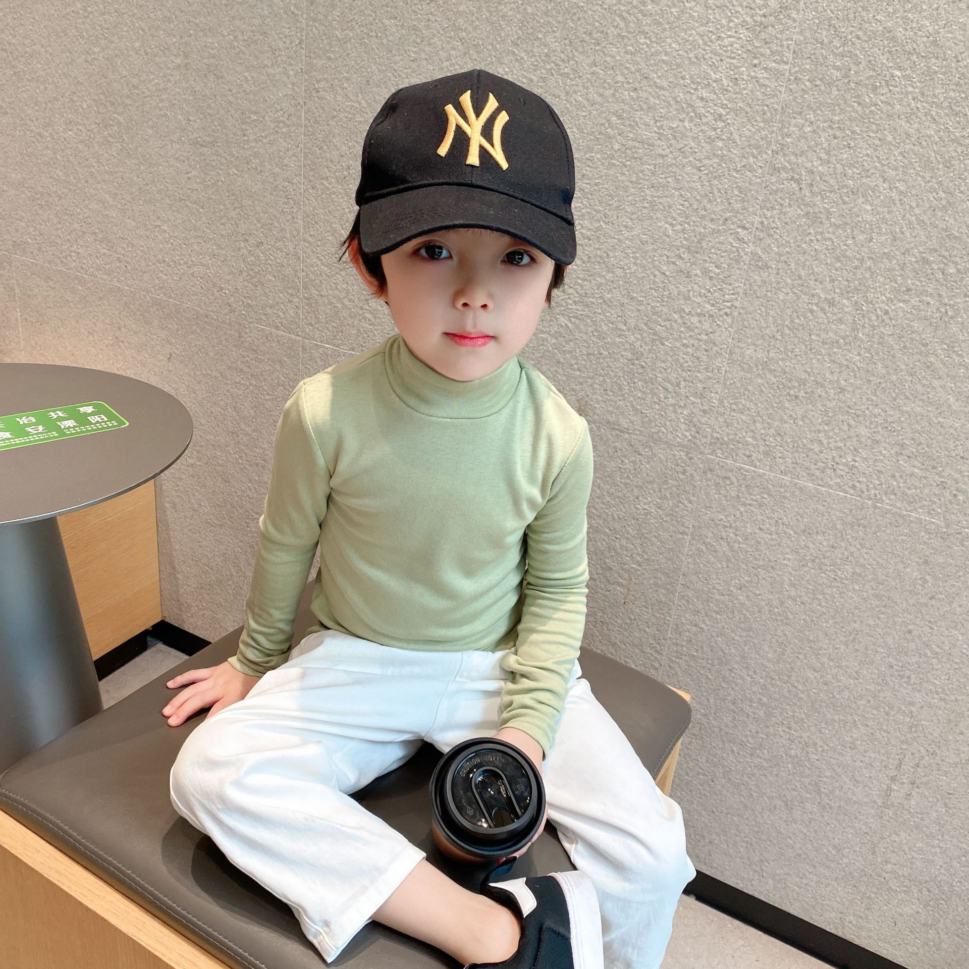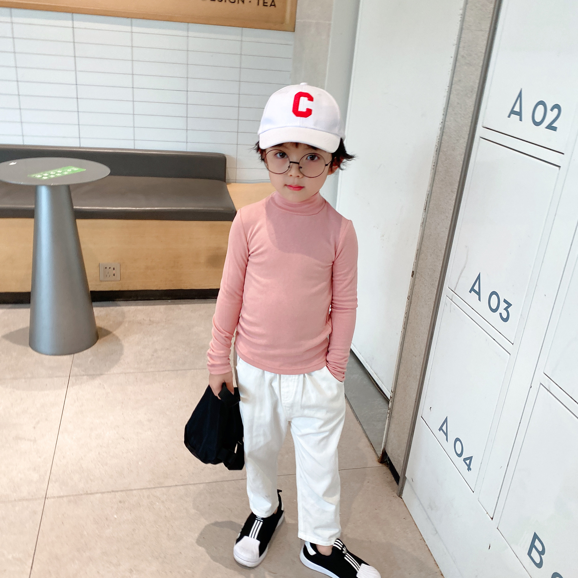 아동용 한국 스타일 단색 하프 터틀넥 기모 여아 이너웨어 남아 봄 가을 티셔츠 여아 상의