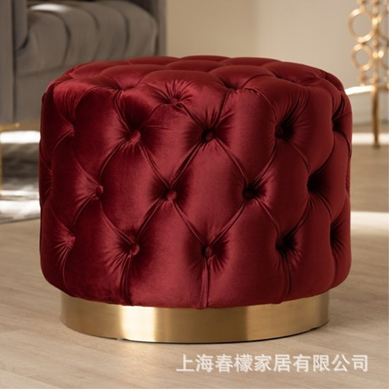미국의 새로운 벨벳 패브릭 버클 소파 스툴 신발 교체 의자 보관소 조명 럭셔리 라운드 드레싱 스툴 발판