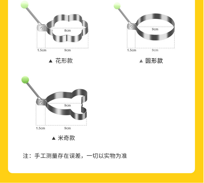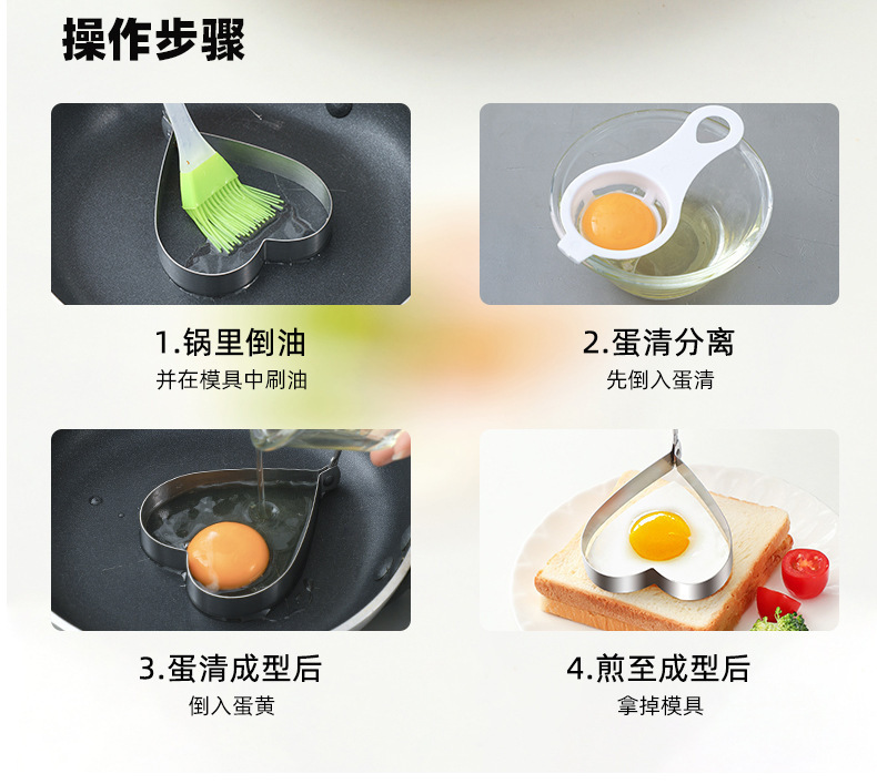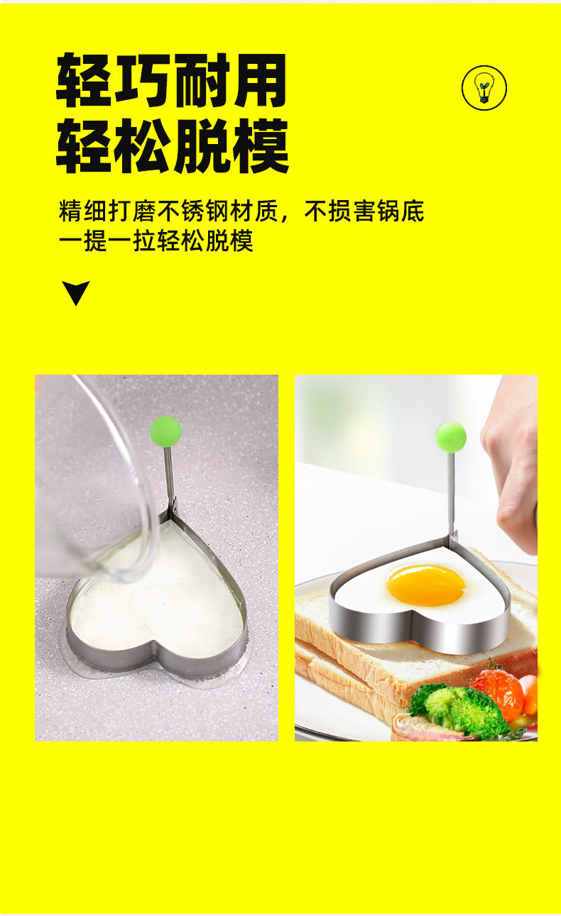 두꺼운 스테인레스 스틸 계란 튀김 모델 데친 계란 분쇄기 하트 모양 튀긴 계란 곰팡이 주먹밥 창조적 인 하트 모양