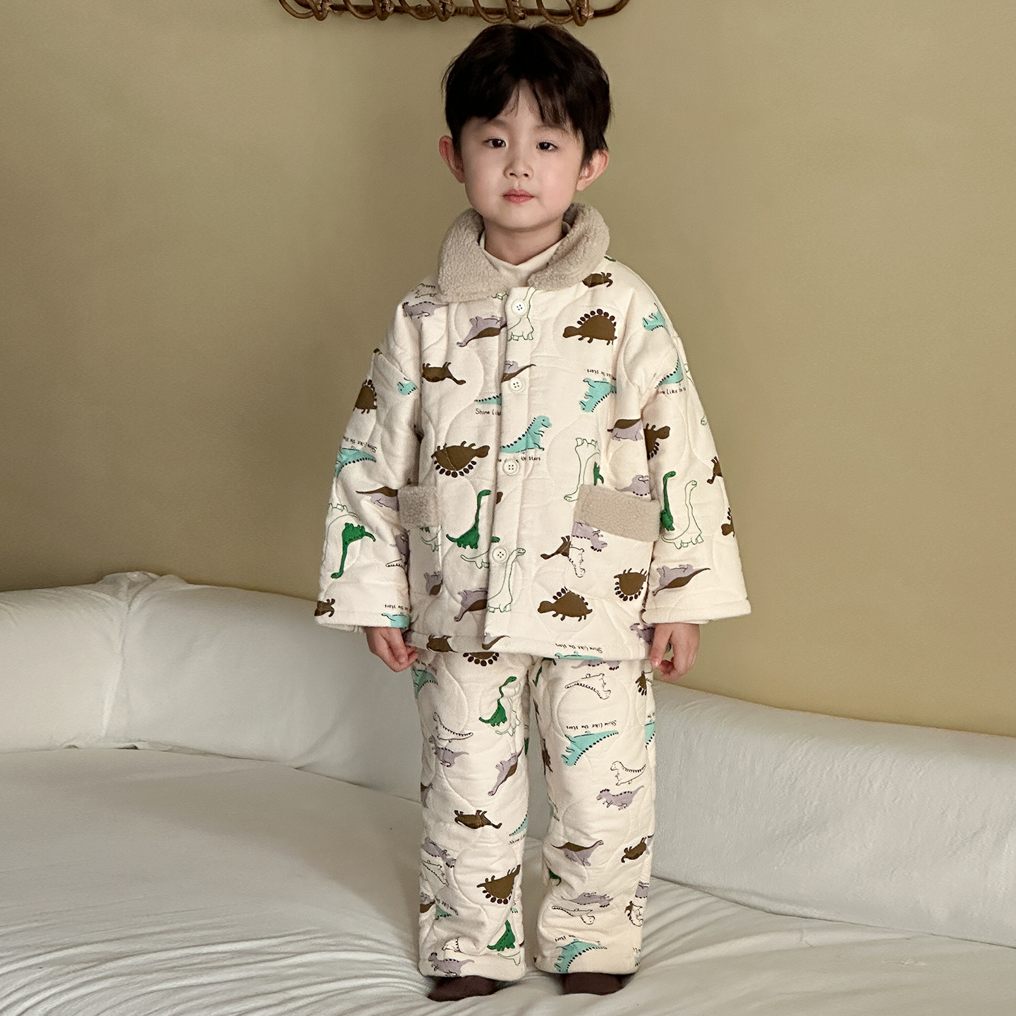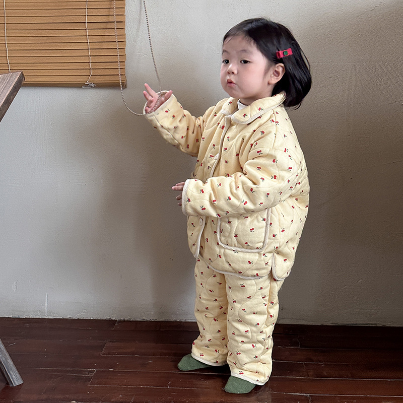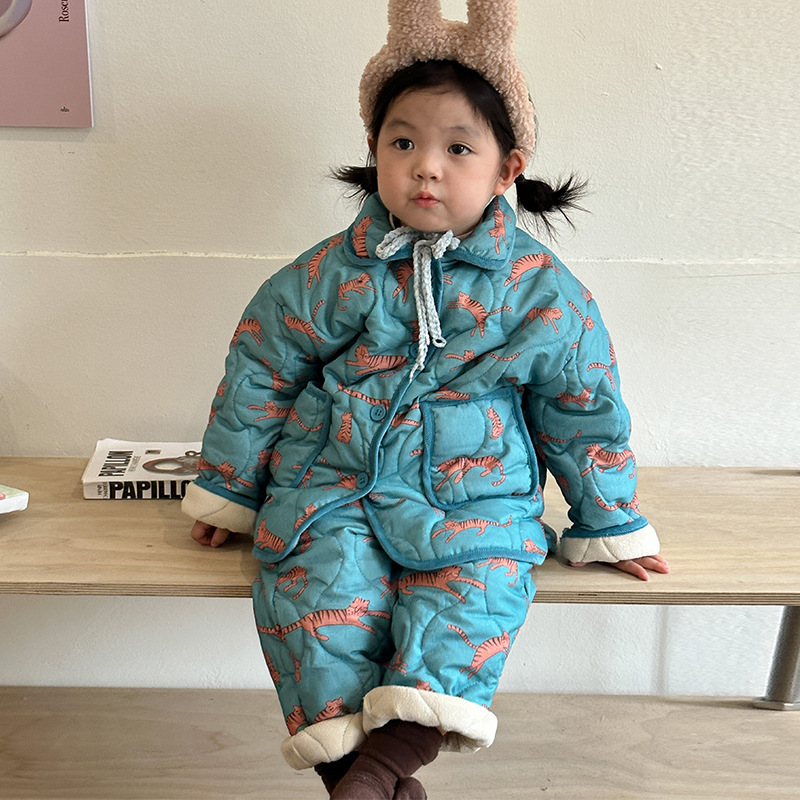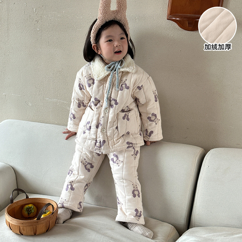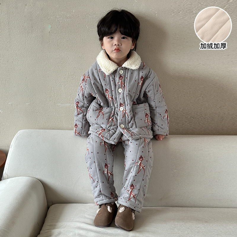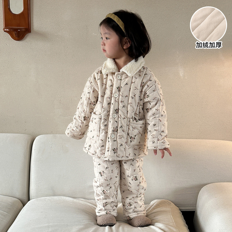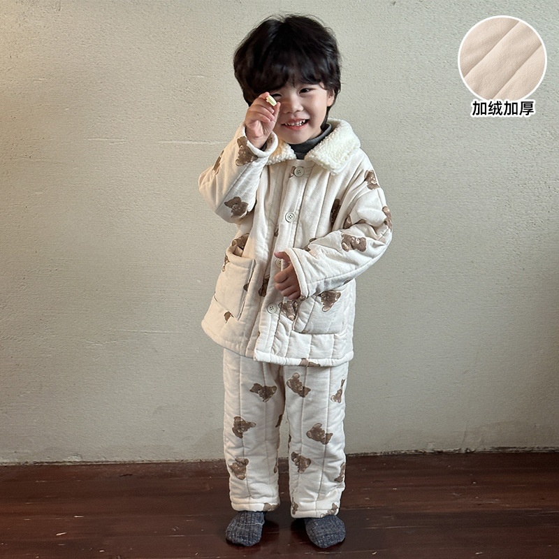 어린이 잠옷 겨울 두꺼운 버전 2025 신상 아기용 플리스 삼중 누빔 여아 남아 홈웨어 세트스토어 가기