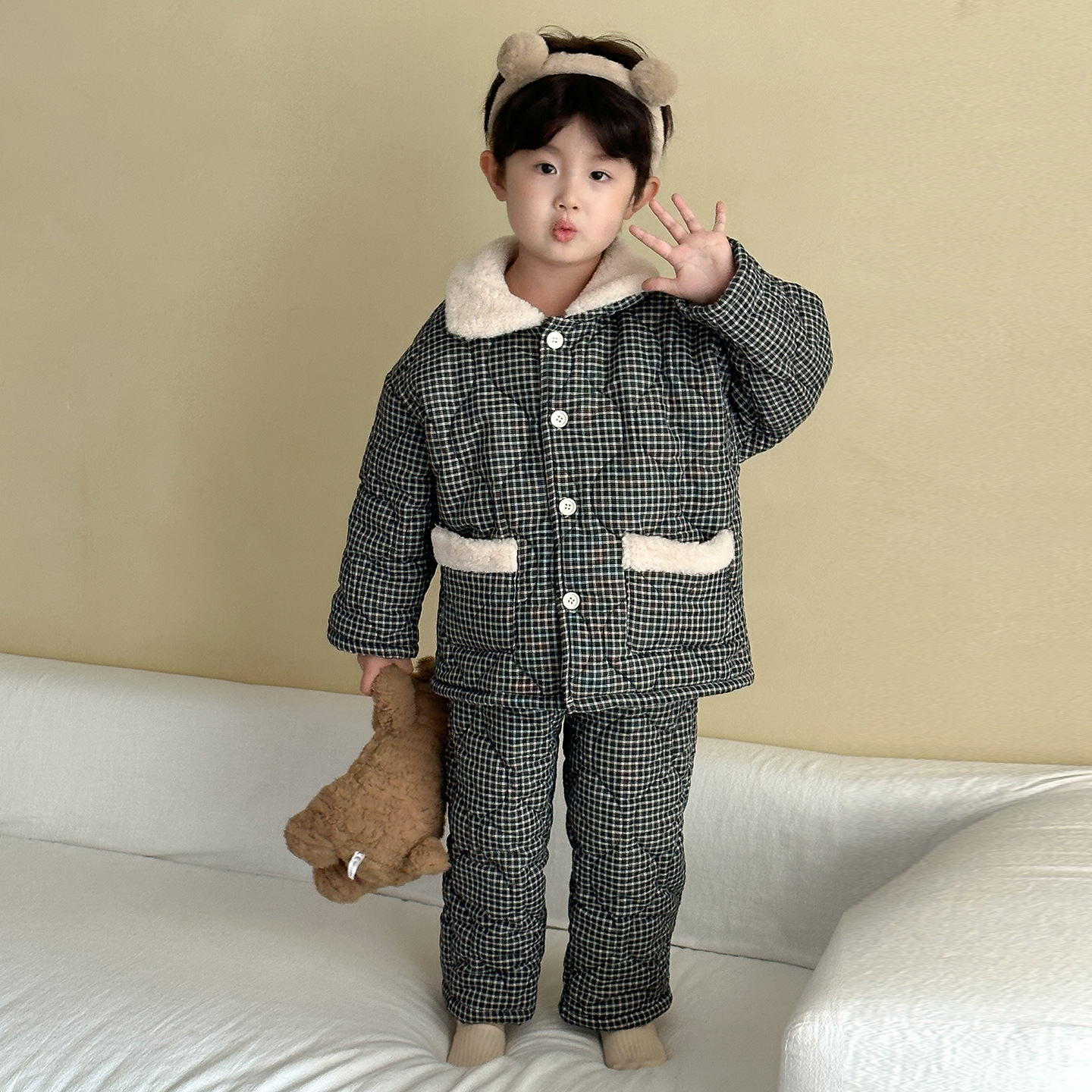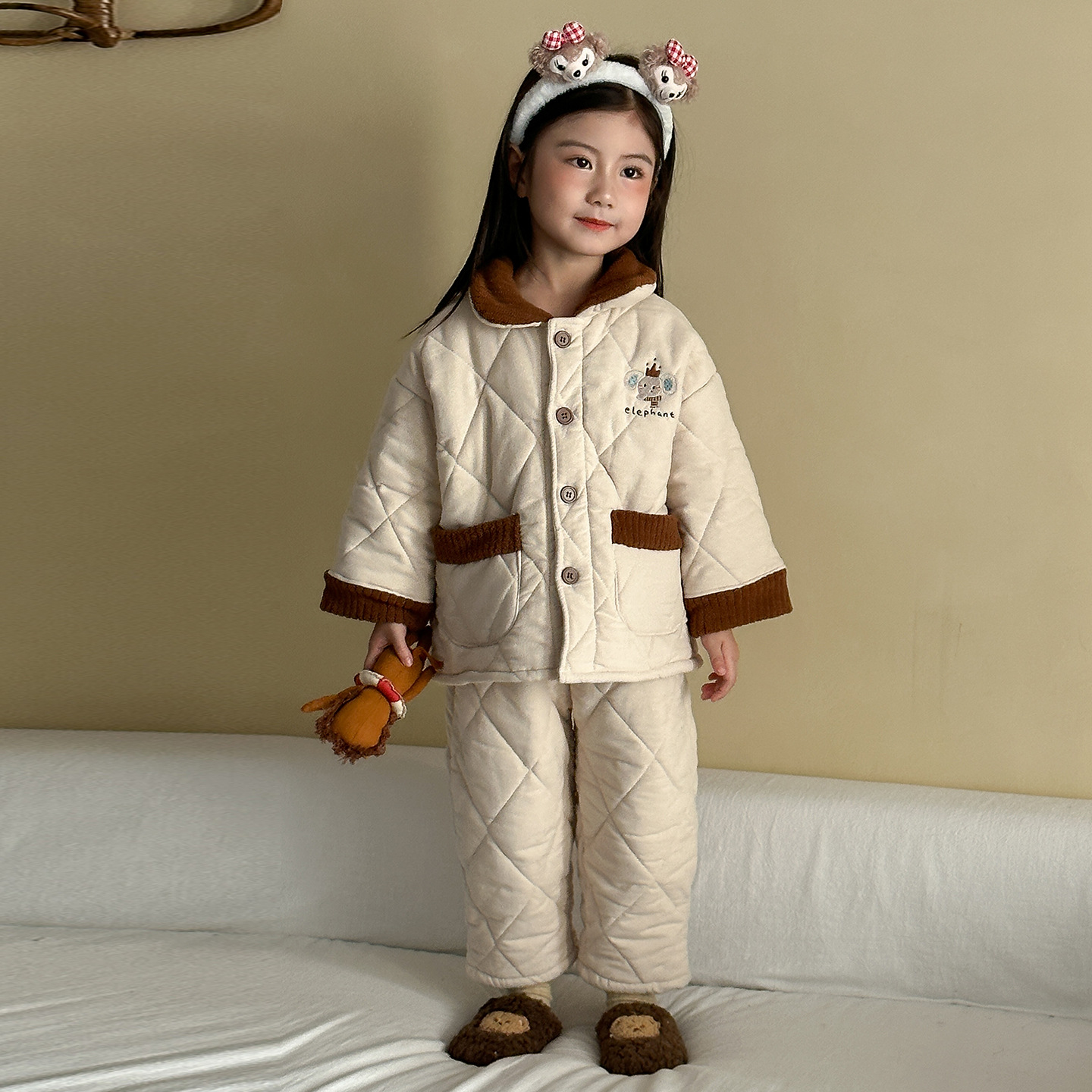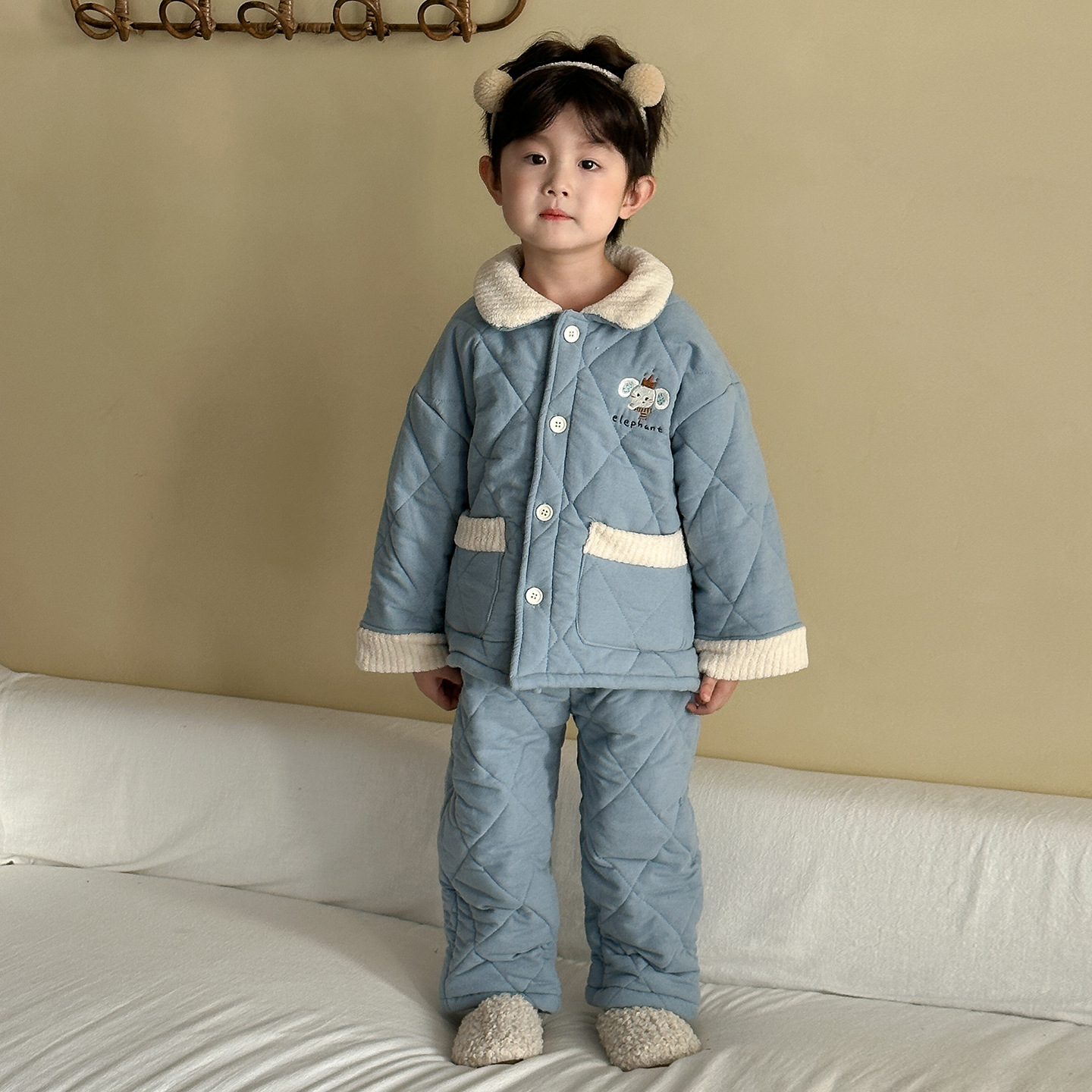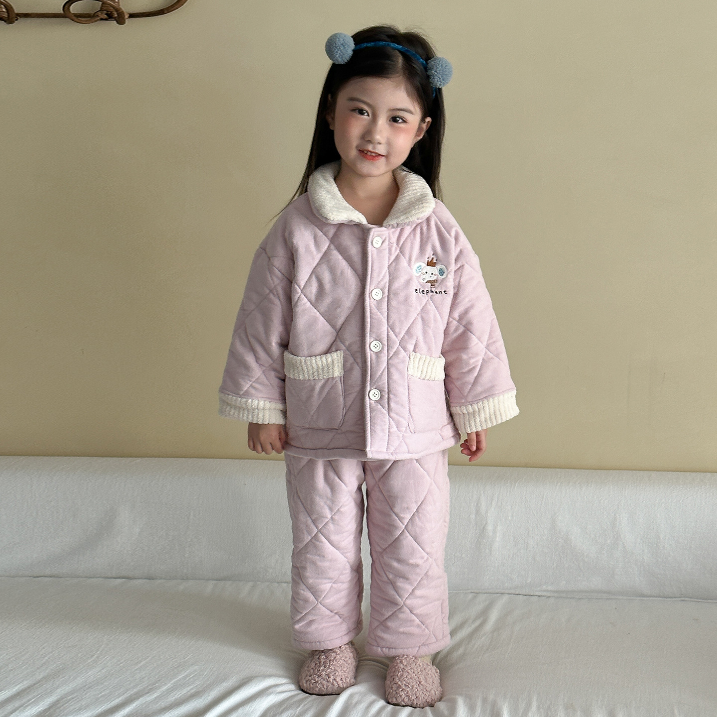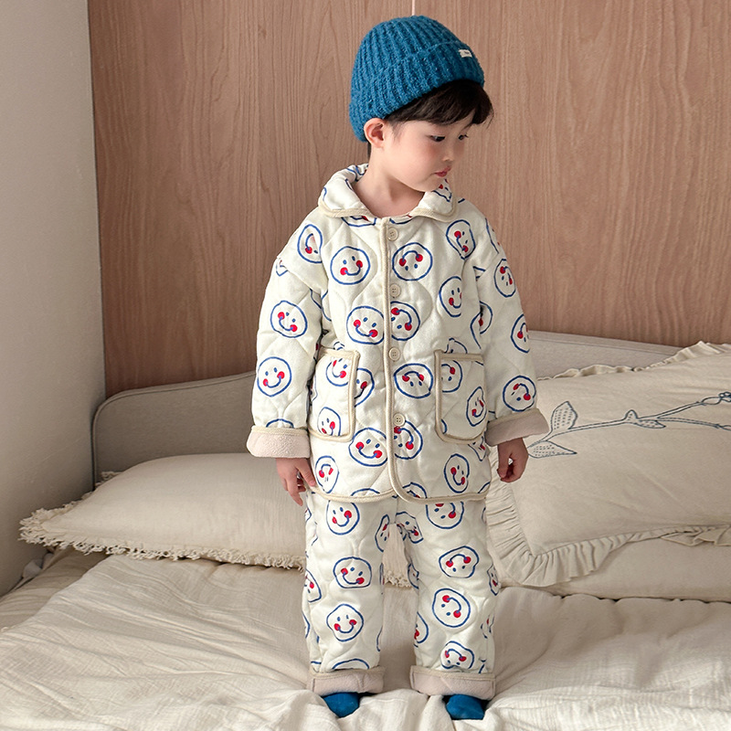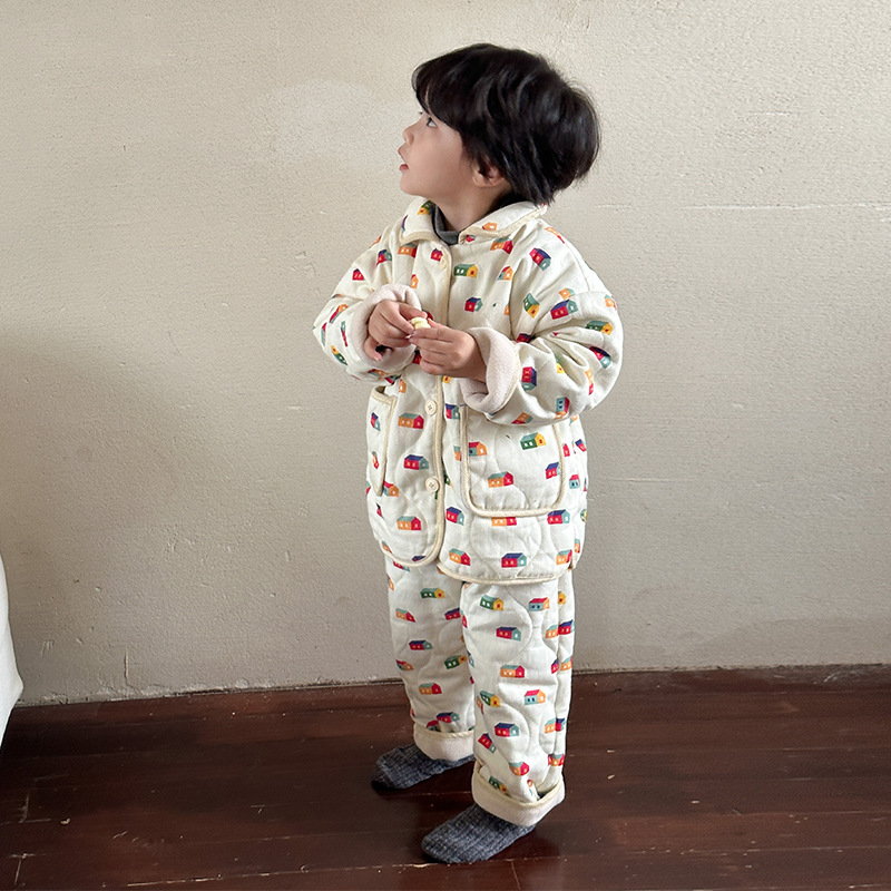 어린이 잠옷 겨울 두꺼운 버전 2025 신상 아기용 플리스 삼중 누빔 여아 남아 홈웨어 세트