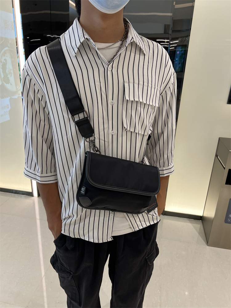 Threebox 유행 브랜드 나일론 남성 가방 캐주얼 플립 크로스 바디 작은 가방 일본과 한국 청소년 휴대용 남성 및 여성 천 배낭