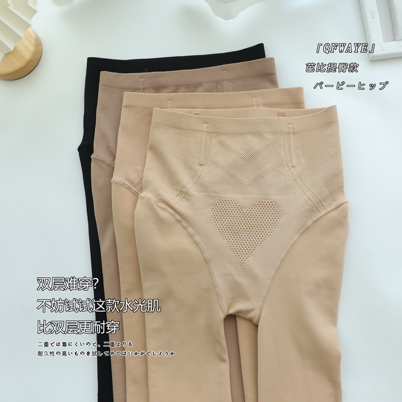 물 빛 양말 가벼운 다리 유물 가을과 겨울 기모 두꺼운 실크 스타킹 여성용 하이 웨이스트 엉덩이 리프팅 살색 맨손 근육 원피스 워터 라이트 팬츠